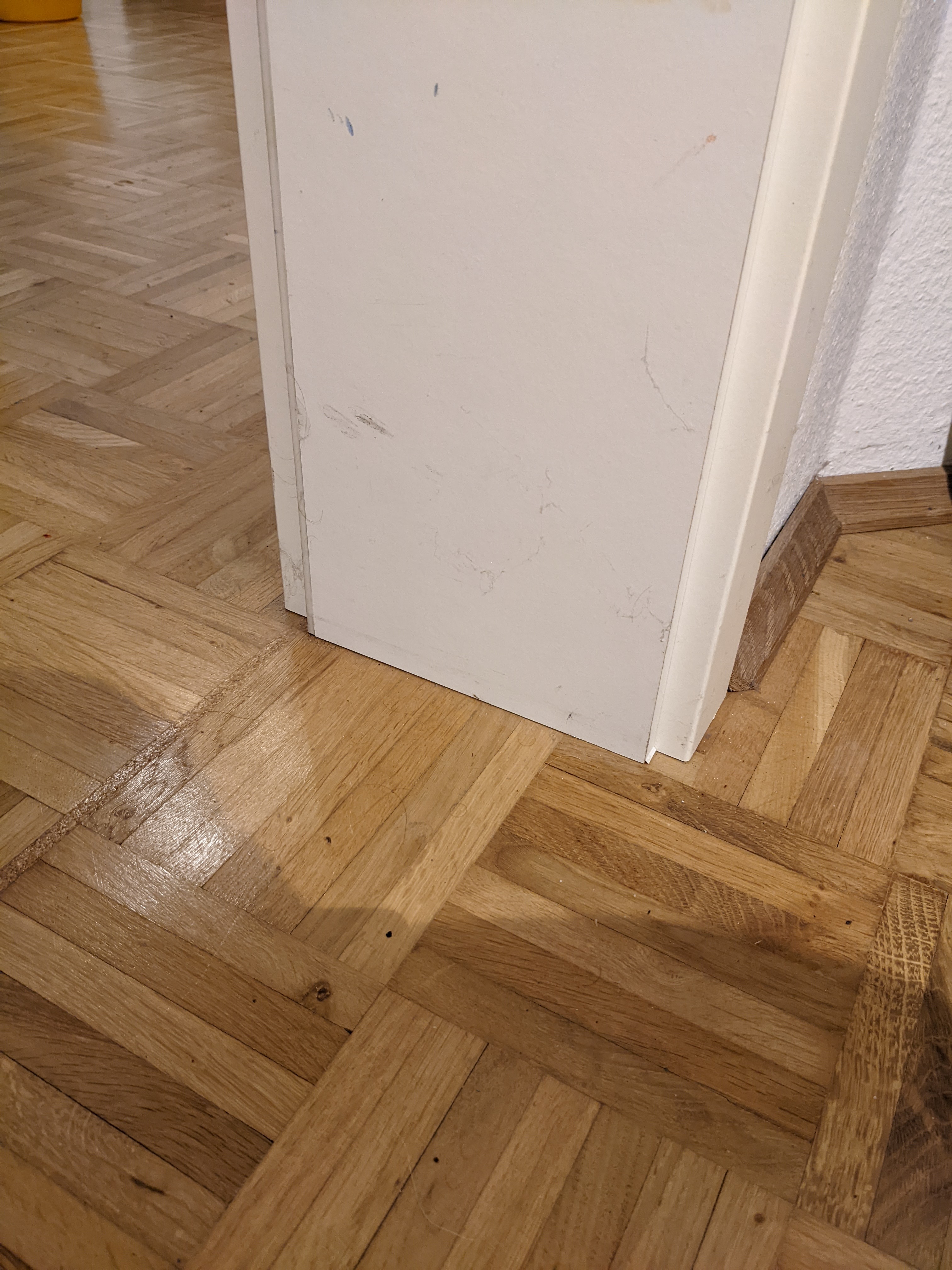 Dazu kommt, das es durchgängiges echtes Parkett gibt. Sprich keine Türschwelle unter der man etwas führen könnte.