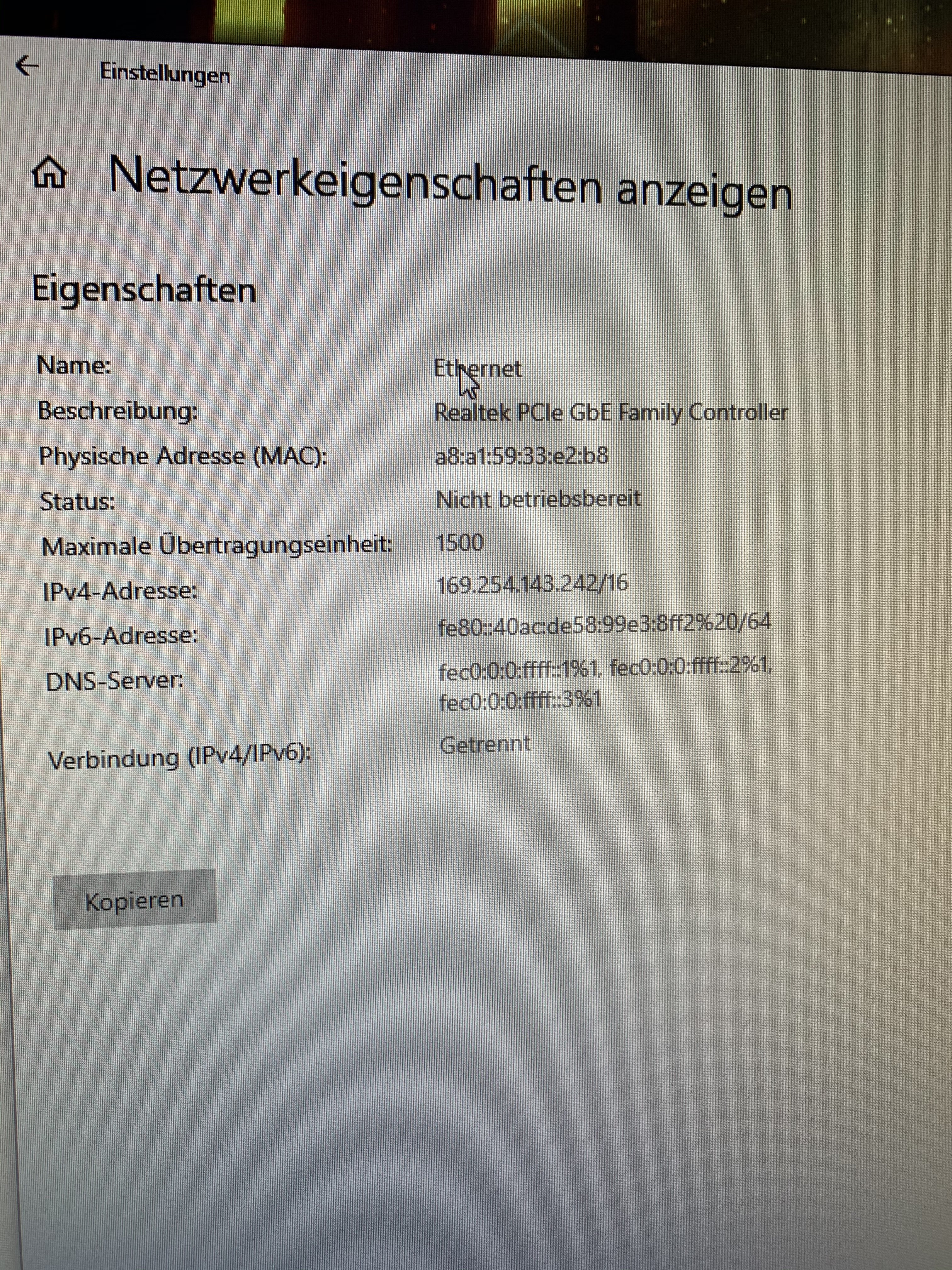 Also Router an aus / gewartet alles gemacht, sollte halt auch nicht am Router liegen da alle anderen Geräte verbunden werden kann.