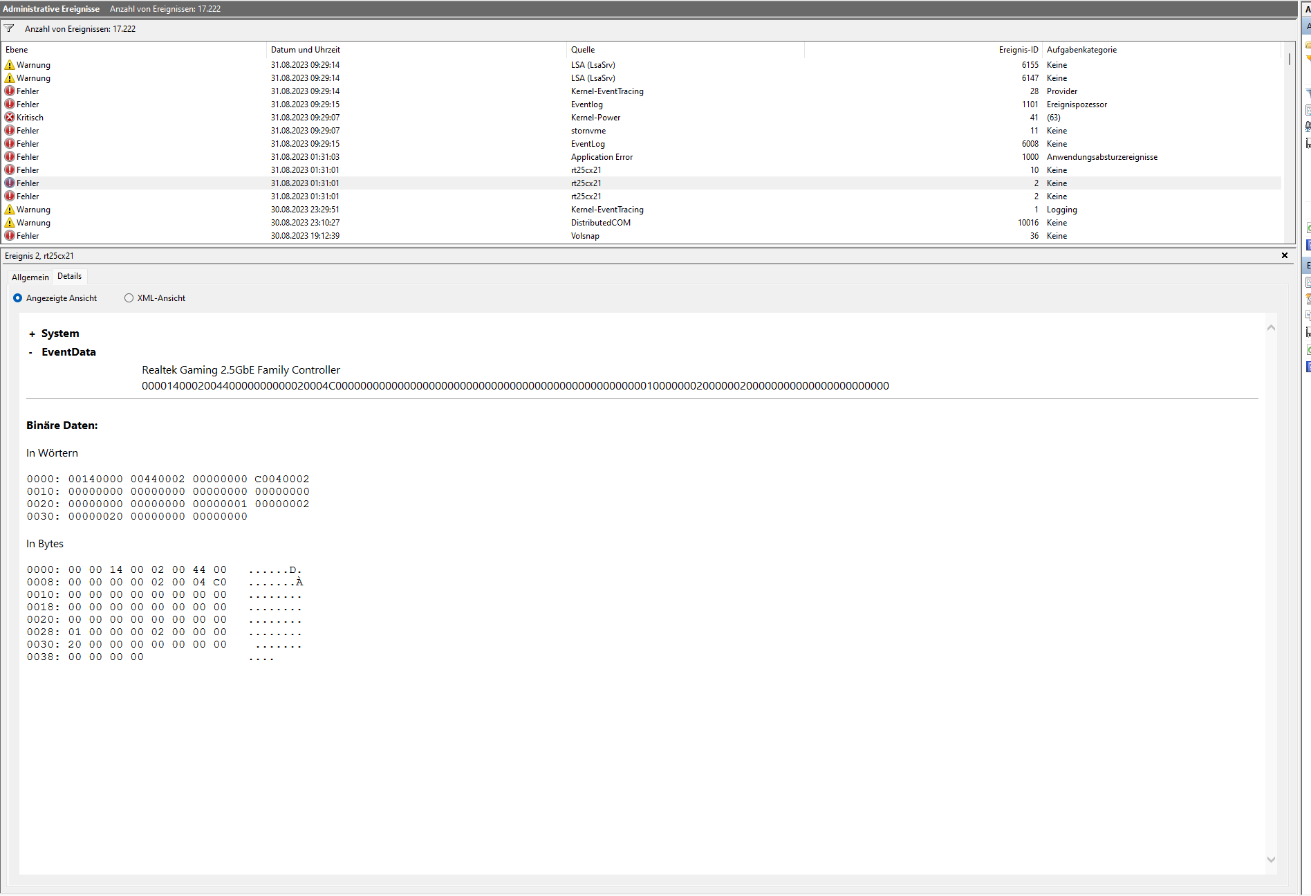 - Nach dem neustart und das Öffnen des Spiels kam wie gewohnt, dass das Internet kurzzeitig abbricht und wiederhergestellt wird. Da ich sehr skeptisch bin, dass der Fehler nun behoben wurde habe ich den PC komplett runtergefahren und 15 Minuten gewartet. Dann wieder eingeschaltet und das Spiel geöffnet. Es kam wieder kurz der Verbindungsabbruch + Wiederherstellung der Verbindung und der altbekannte Fehler in der Ereignisanzeige: rt25cx21. Bis jetzt keinen erneuten Verbindungsabruch. Was genau ist dieser Fehler? Kann man den irgendwie beheben ? Ich habe halt angst das, wenn ich dann zocke der Verbindungsabbruch random erscheint während ich im Spiel nicht sterben darf.