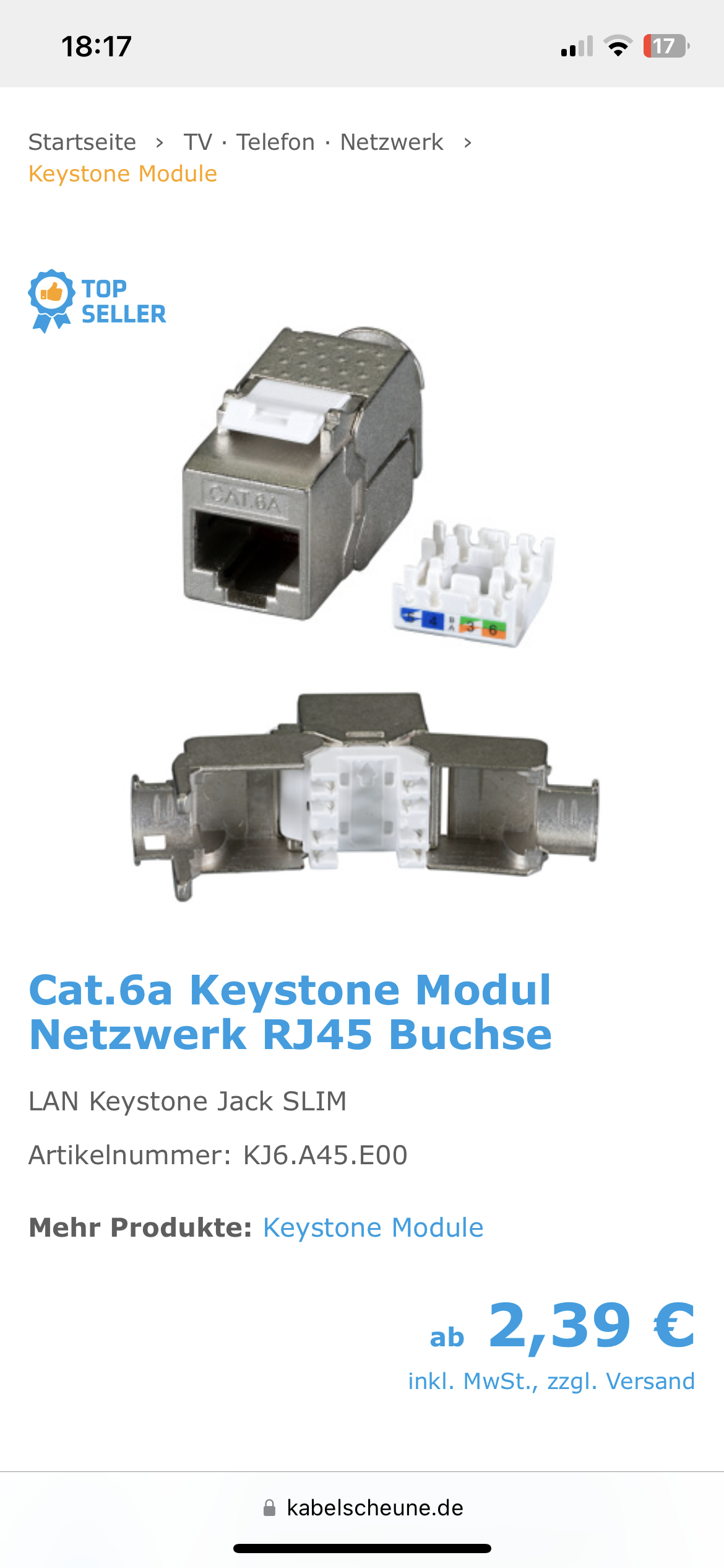 In dieser Kombi geht es aktuell. Ich schließe statt der patchdose jetzt nochmal ein keystonemodul an