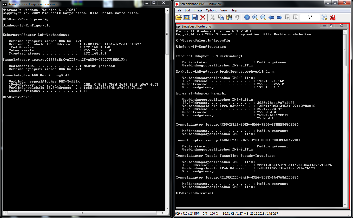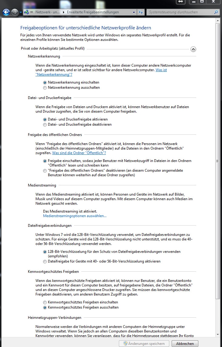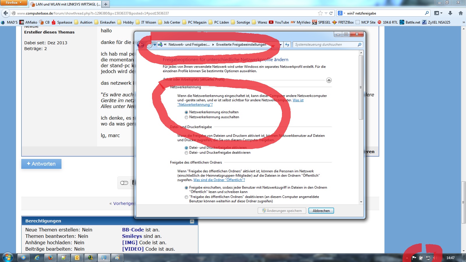 mein problem: wir haben 3 laptops im haus, dazu noch einen wlan drucker, einen wlan blueray-player und einen stand-pc. alles hängt per wlan am linksys nur der pc mittels lan (kabel). seit ich dem pc ein neues betriebssystem verpasst habe (win 7) kann ich zb vom pc aus nicht mehr drucken, der blue ray player sieht alle anderen geräte (laptops ..) nur eben den pc nicht mehr, etc etc .. internetverbindung aber funktioniert von allen geräten aus.