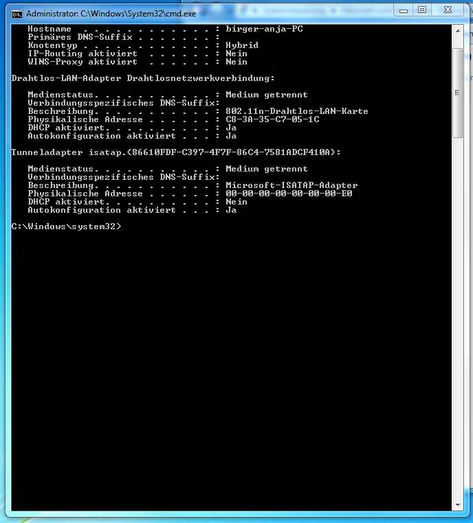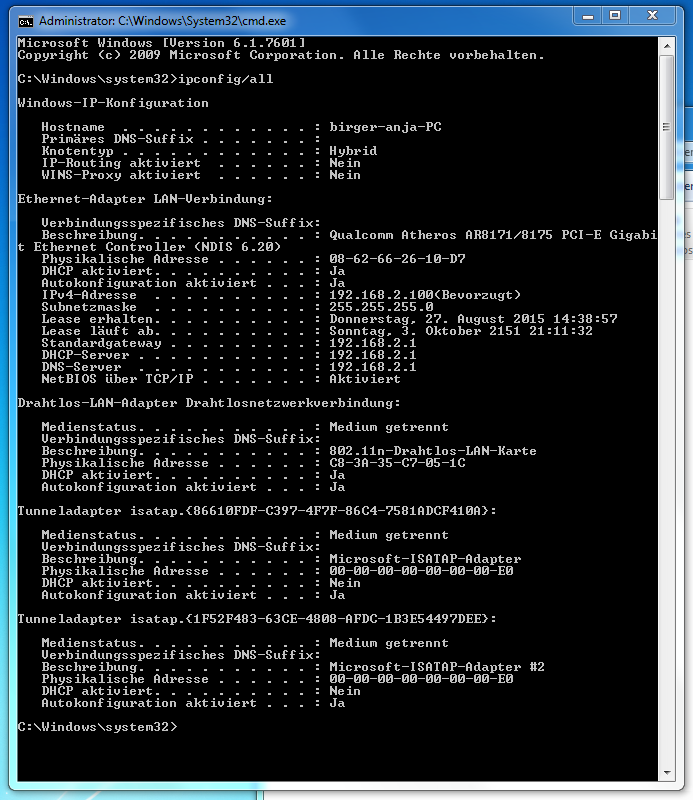 Screen von ipconfig habe ich vorsichtshalber schonmal gemacht. Vielleicht hat ja jemand ene idee. Vielen dank schonmal