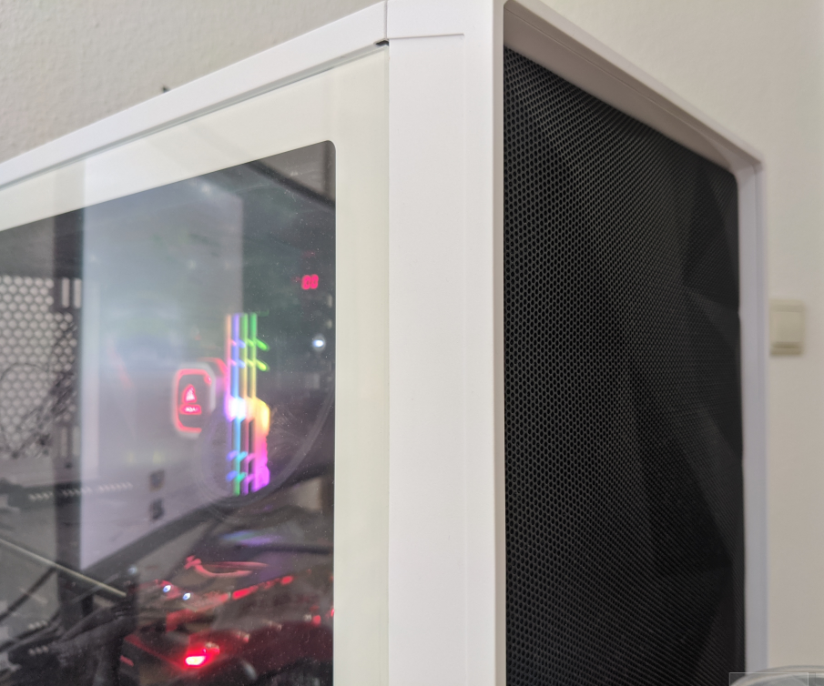 Generell muss ich sagen, dass mir weiße Gehäuse besser gefallen als schwarze. Seit wenigen Jahren bin ich auch ein Fan von RGB-Beleuchtung in der Front.