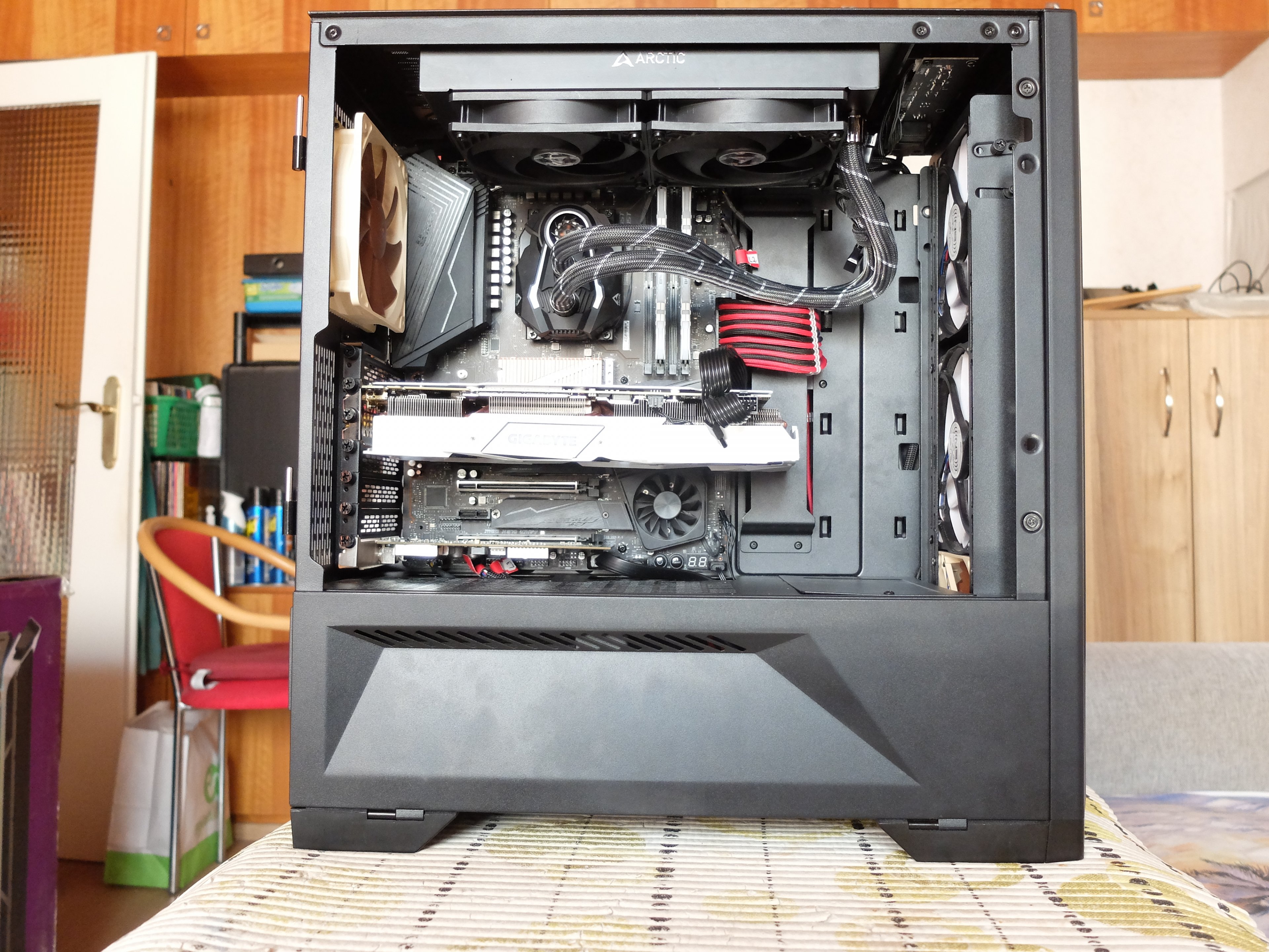 Im Test steht, dass die gleiche Hardware auch beim Pure Base 500DX verbaut wurde. Also ich würde nie eine Wasserkühlung im Deckel des 500DX einbauen. Da braucht man ja gleich drei Hände. Die Stecker von Pumpen- und Lüfteranschluss muss man vor der Montage des Radiators anstecken, und diesen einstweilen festhalten. Macht man es umgekehrt, kommt man nicht mehr zu den Anschlüssen.