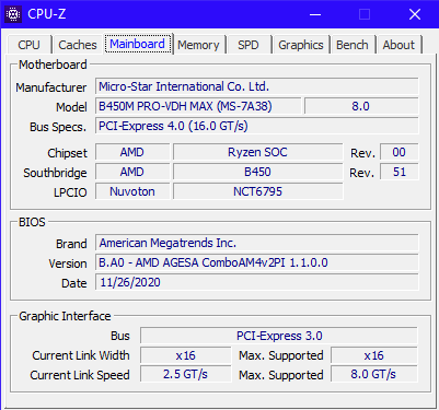 Mainboard: B450 MSI Pro VDH Max