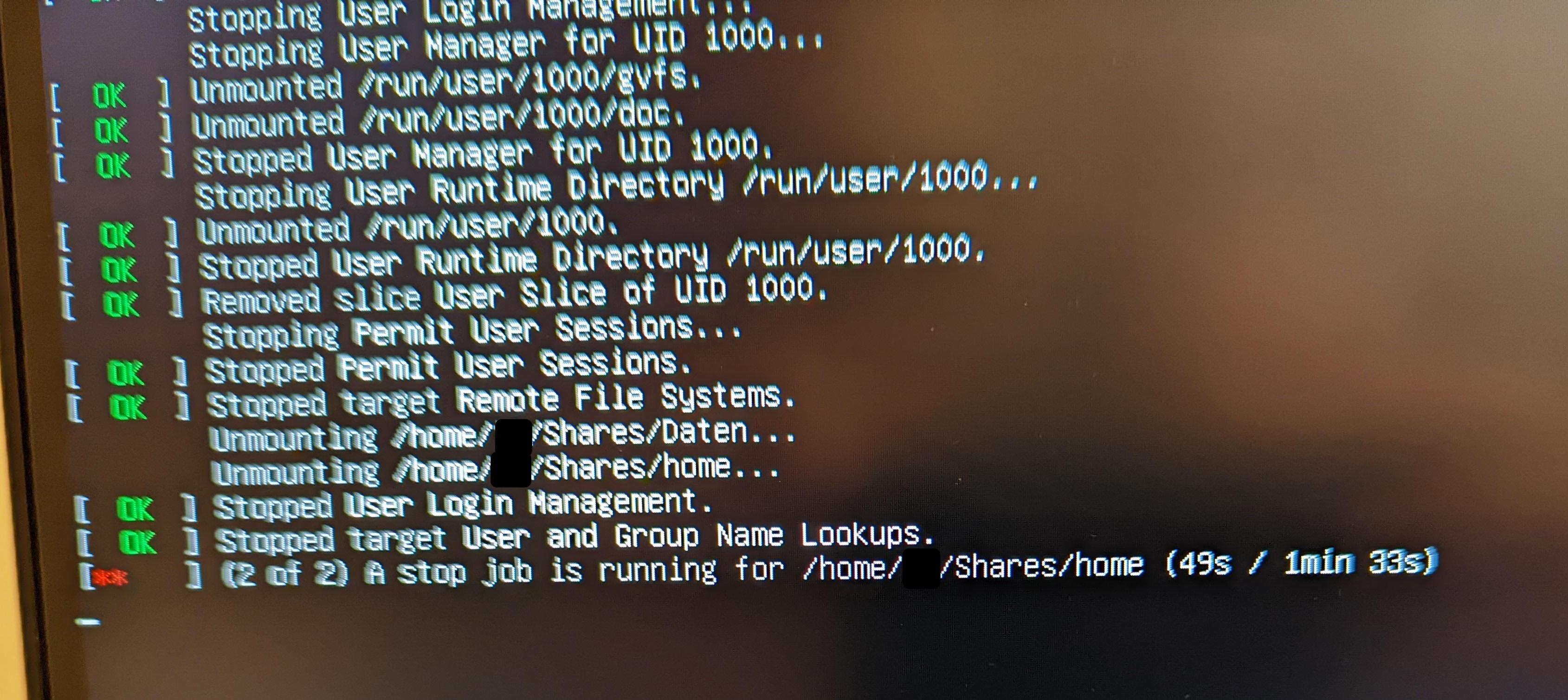 Anbei ein Foto des Herunterfahrens: