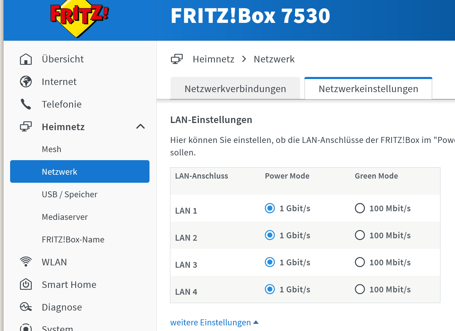 Mein Arbeitsrechner, der direkt per LAN an der Firtzbox hängt, kriegt aber bei allen gängigen Speedtest Providern(Ookla, Google, AVM,etc.) nicht mehr als 40 mbit/s hin.