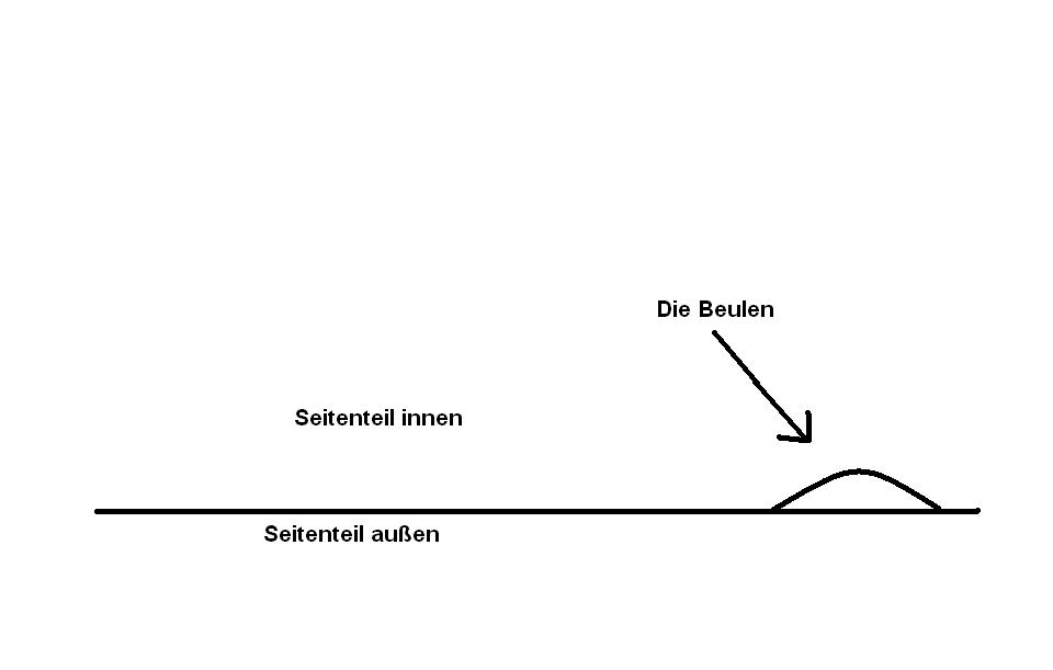 Naja, also ich würde mal sagen mitm Hammer die "Beulen" weng ausbeulen, dann mit nem Schlitz-Schraubendreher und Sandpapier den Lack entfernen und die restlichen Löcher mit so Autospachtelmasse zukleistern. Einfach mal im Baumarkt schauen. Eventuell haste ja Glück und du kannst des in ner Autowerkstatt selber machen, dann brauchste keine ganze Dose von dem Zeugs kaufen oder bei deinem Dad in der Werkstatt gibts sowas auch für Metalle. Dann nach dem Trocknen noch schön abschleifen (du musst ja eh die Seitenwand schleifen), mit nem feinen Sandpapier nochmal drüber (so 600er oder mehr) und dann drüberlackieren. Fertig. Wie die Stelle von innen aussieht is völlig Banane, die sieht ma eh nicht.
