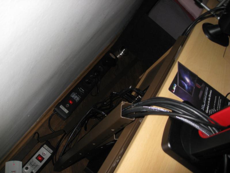Machst du dann noch was wegen der Verkabelung? Sieht halt unschön aus und ist ein wahrer Schmutzfänger. Kabelleisten sind da angenehmer. Bei mir sieht's momentan wie folgt aus. Is noch nicht fertig - einerseits hätt ichs gern in schwarz. Die Färben ist etwas schwierig, k.A. ob ich das mach oder andre hol (habs geschenkt bekommen). Weiters muss ich auch bei den beiden vertikalen auf entsprechender Höhe noch Kerben machen um die Kabel dort und nicht unten rauszuführen. Und dann kommt noch eine Regalwand dort hin, sobald ich ein passende finde sonst bastel ich halt bei Gelegenheit eine.