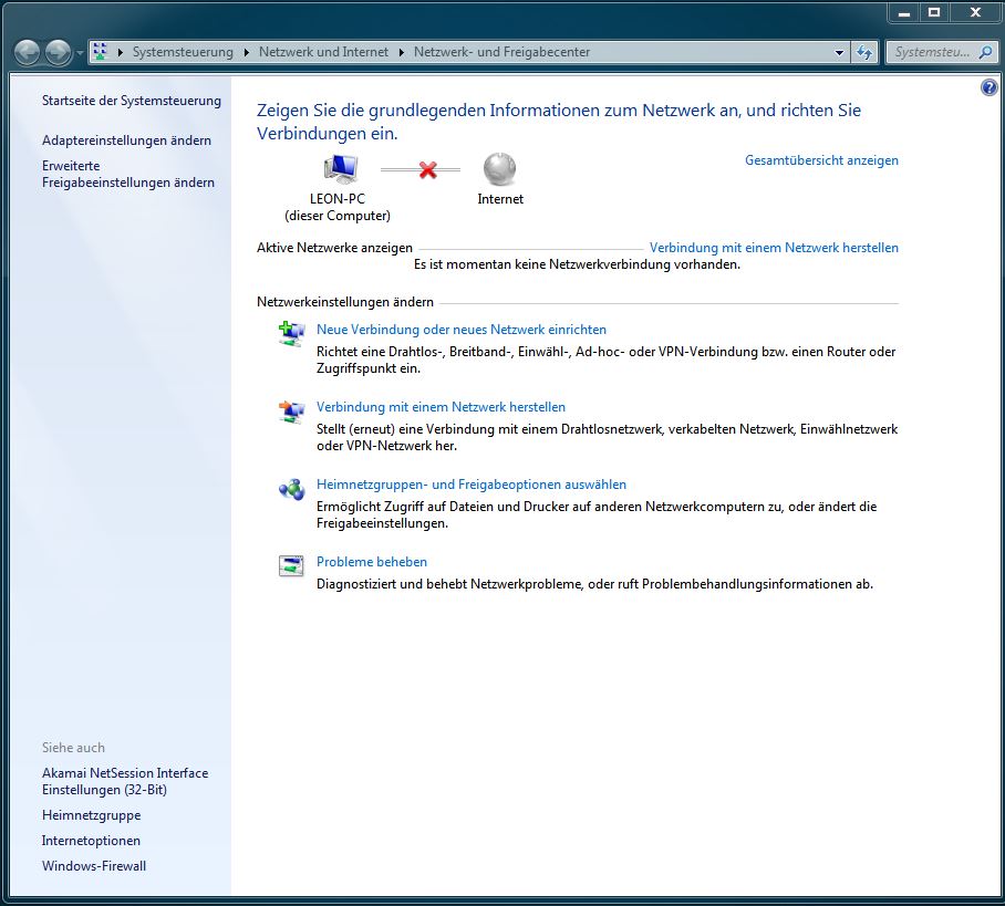 In der Taskleiste wird mir die Verbindung zum Internet nicht angezeigt. Man sieht nur rot durchgestrichene Striche. Außerdem hab ich bereits versucht den Treiber des Lan-Ports zu deinstallieren und neu zu installieren (alte und auch den neusten Treiber). Die Installationen verliefen ohne Probleme, jedoch komm ich am Rechner einfach gar nicht mehr ins Internet.