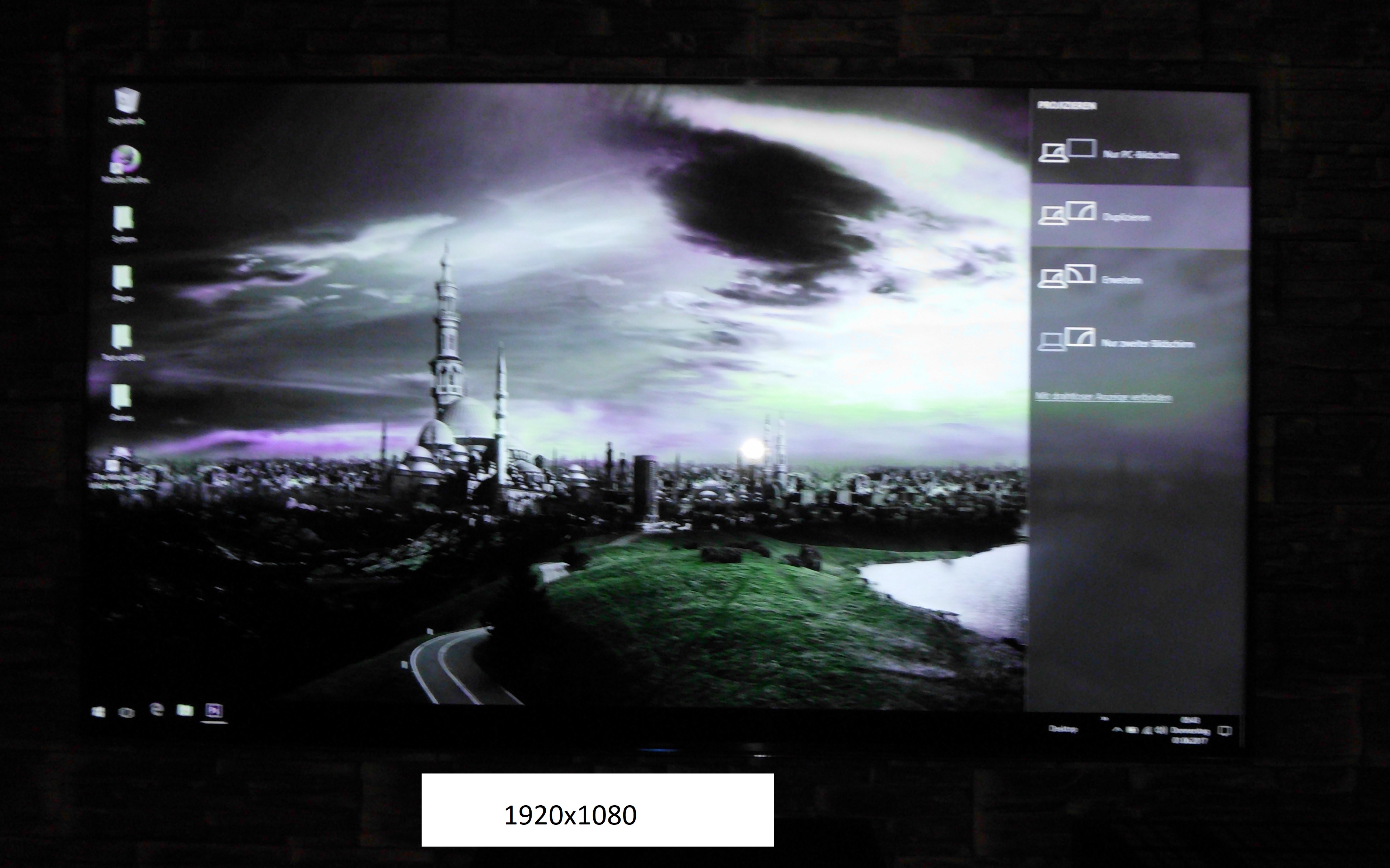 wenn ich bei 1920x1080p das Bild Dupliziere sieht es auf dem Notebook normal aus aber auf dem TV voll komisch.