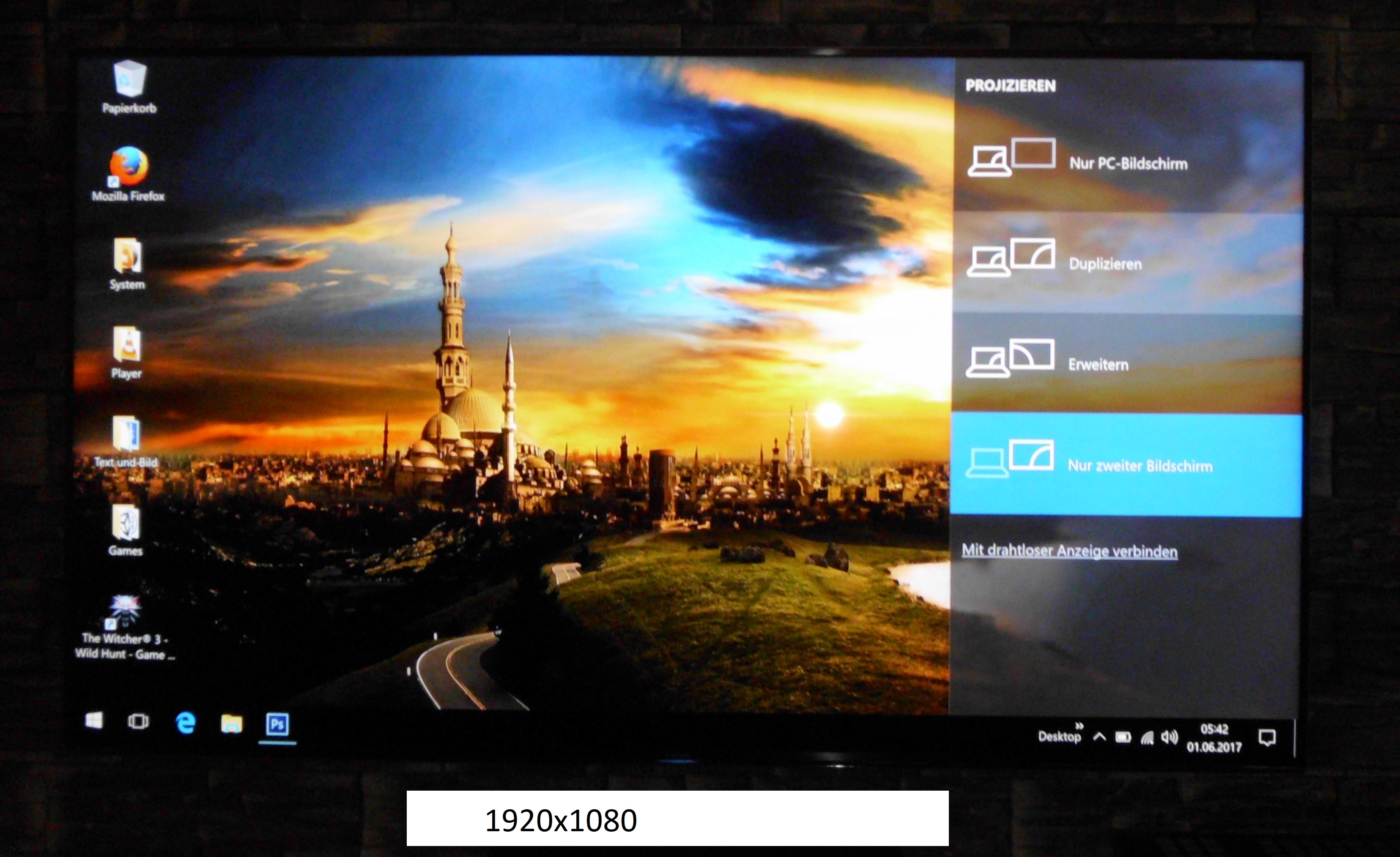 bei Erweitern oder nur zweiter Bildschirm (TV) schaut es ganz normal aus.