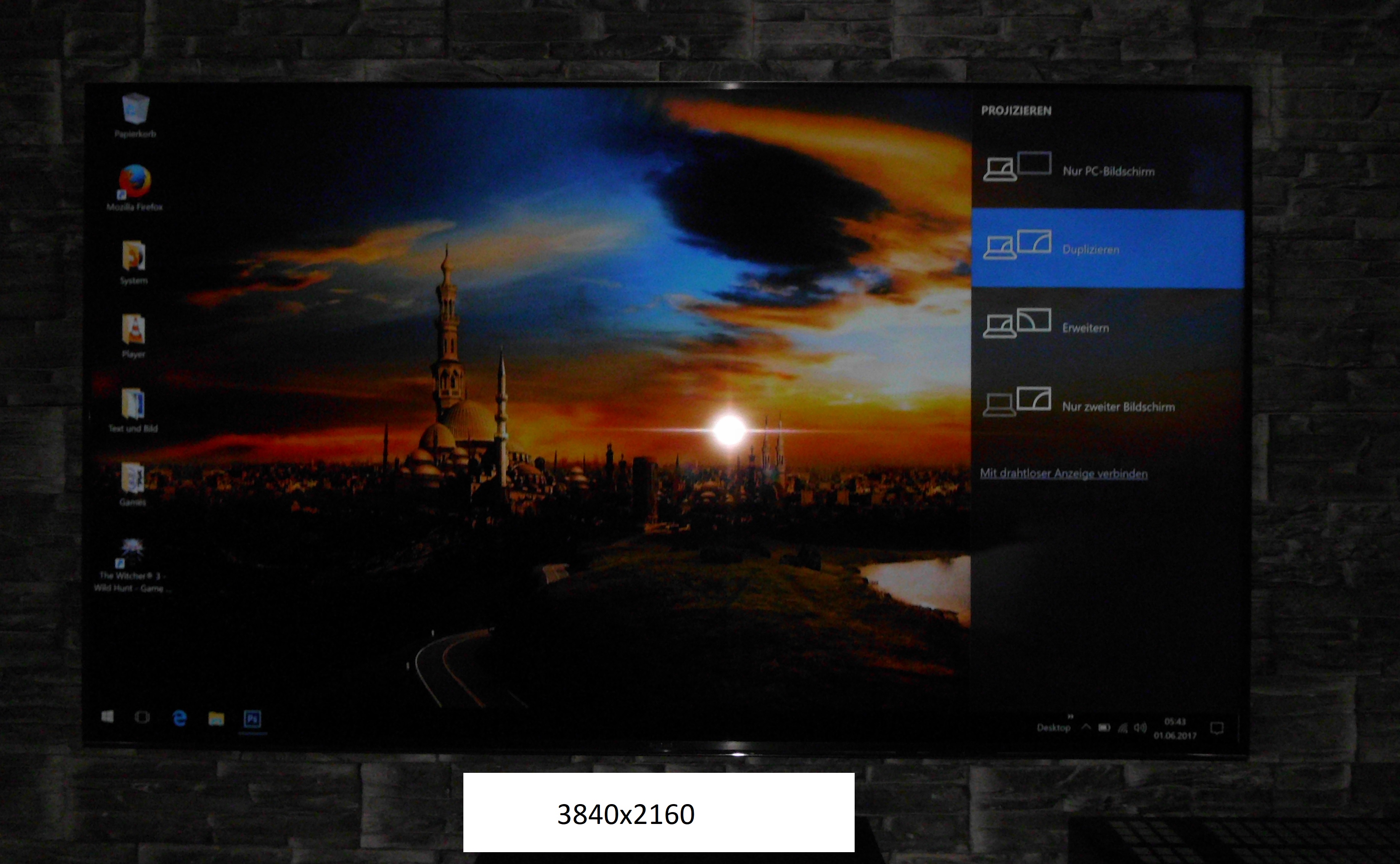 wähle ich die Auflösung 3840x2160 kann ich Duplizieren, Erweitern und nur zweiter Bildschirm wählen ohne das das Bild merkwürdig aussieht.