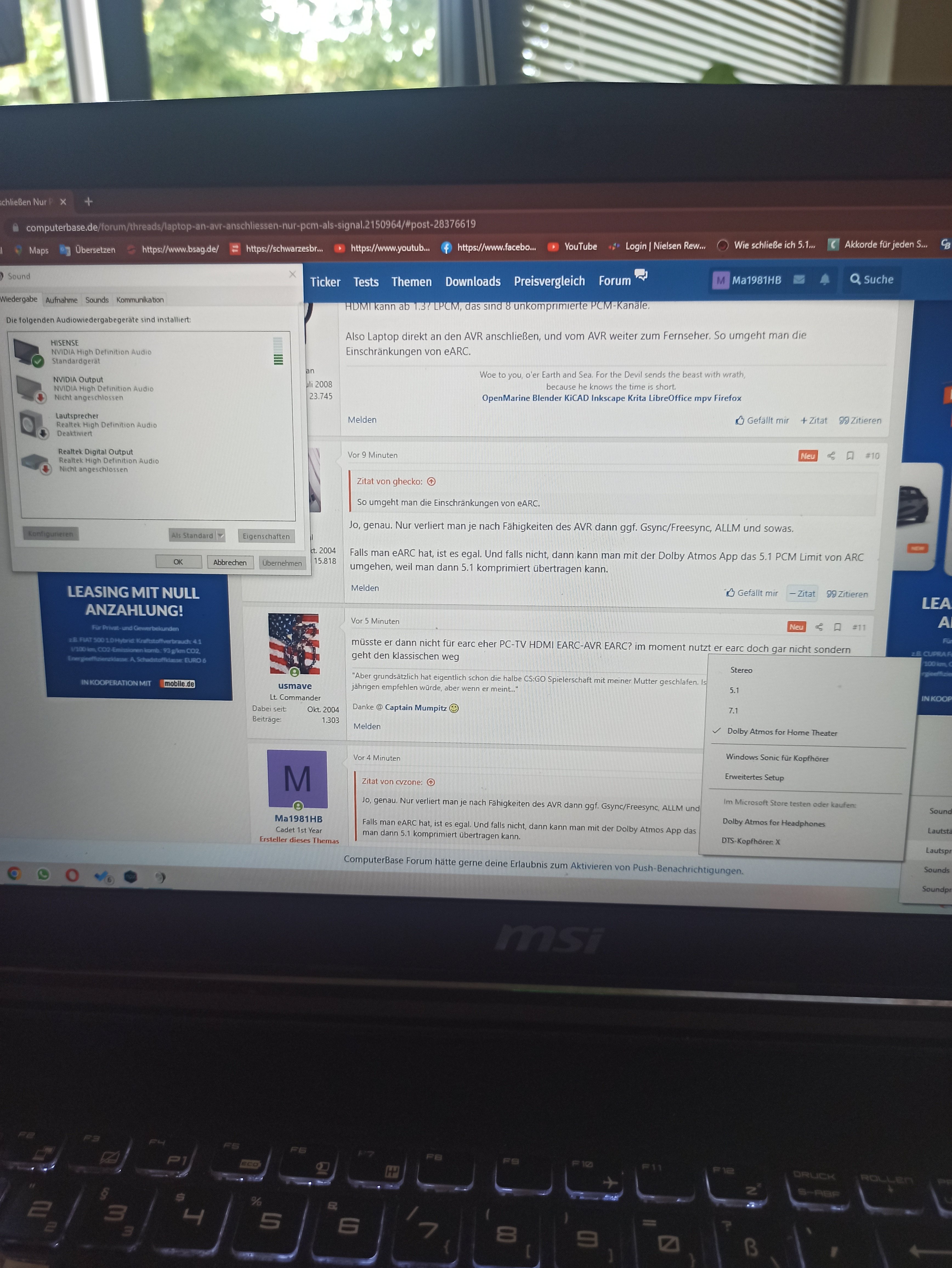 Ich habe mir jetzt ein besseren AVR besorgt weil mein alter kein ARC Eingang hatte. Jetzt hab ich alles angeschlossen und mir wird auch bei Windows 5.1 angezeigt aber beim AVR steht immer nur PCM als Signal Empfang?