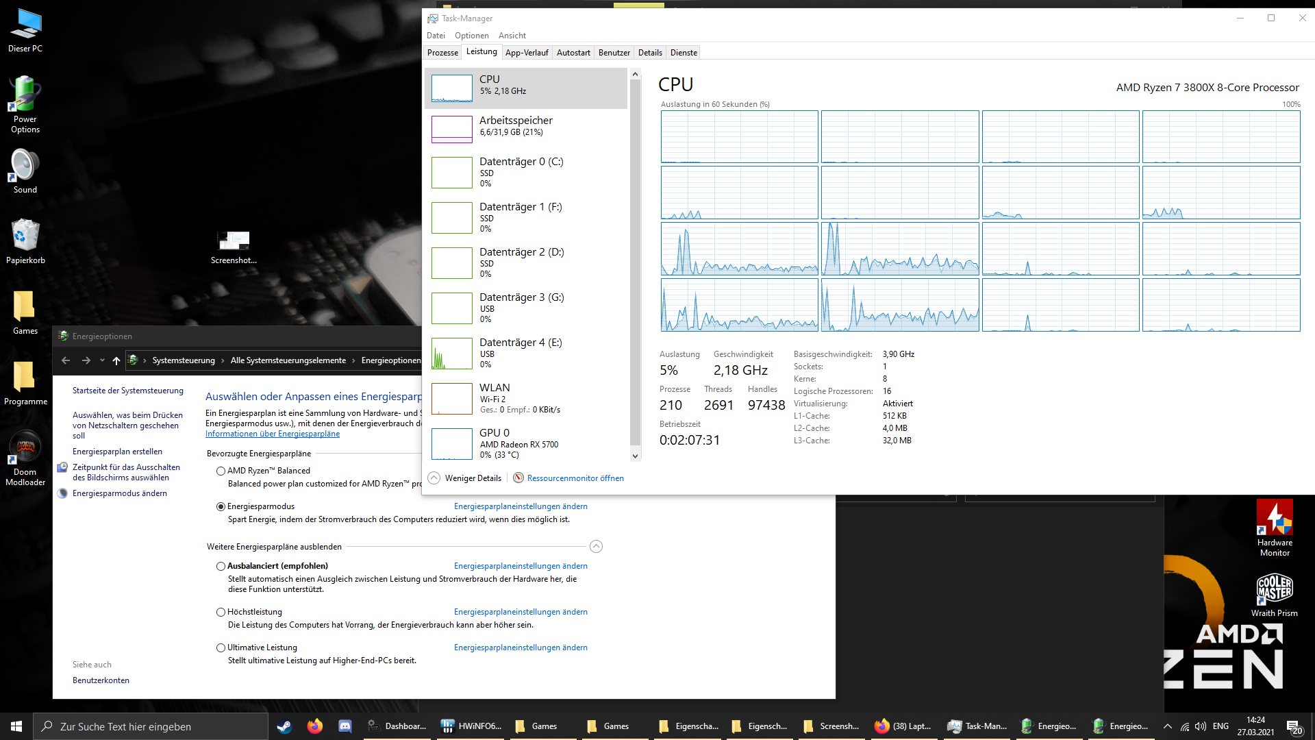 Die CPU Temperatur (und auch teilweise die Auslastung) geht signifikant in die Höhe, wenn man von Energiesparmodus auf Ryzen-Balanced stellt.