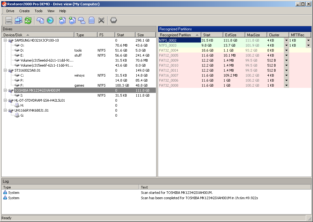 Ich habe einen Scan mit Restorer2000 gemacht.