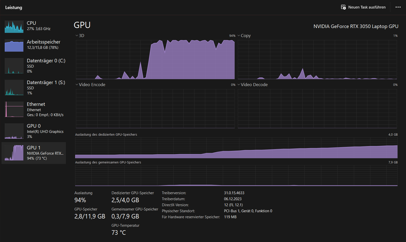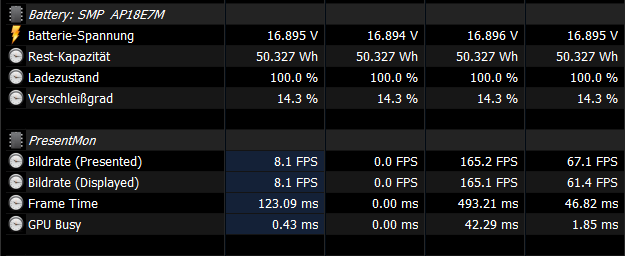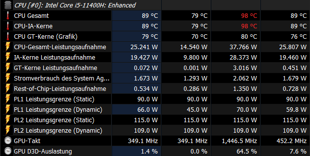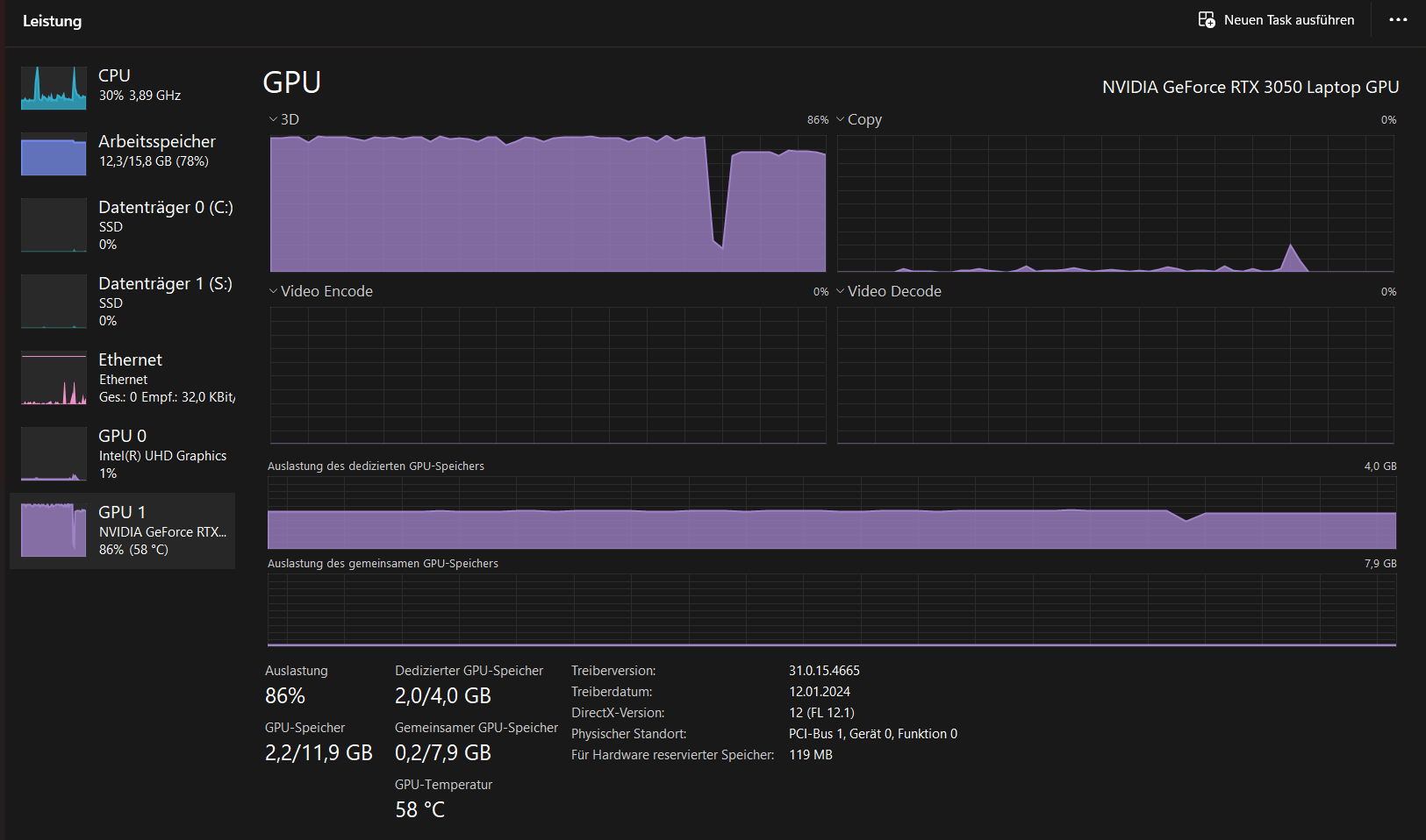 Hallo, mein Laptop hat seit gestern ein Problemchen. Ich hatte ihn am Nachmittag dem Tag zuvor zum Zocken bei einem Kumpel und dann am Abend zum Streamen benutzt, ohne Netzteil und im Energiesparmodus. Hat alles geklappt, keine Probleme, habe ihn genutzt, bis der Akku fast leer war. Am nächsten Morgen, also Gestern früh, spiele ich eine Runde WarThunder. Auf einmal drehen die Lüfter aufs Maximum hoch und die FPS droppen von ca. 100 auf 40 bis 20. Natürlich habe ich das Spiel sofort beendet, da es einfach nicht mehr spielbar war. Dann habe ich es heute erneut versucht, das gleiche Problem, nur drehen die Lüfter nicht mehr hoch, sondern das Spiel bleibt bei 40 FPS. Das gleiche in grün bei ARK. Der Spielstand lädt, alles gut. Aber ingame braucht es ewig, bis die Konturen der Strukturen/Dinos geladen hat. Und dann sind es auch maximal 30FPS. In BF5 und Hell Let Loose das selbe, es ist einfach nicht spielbar.