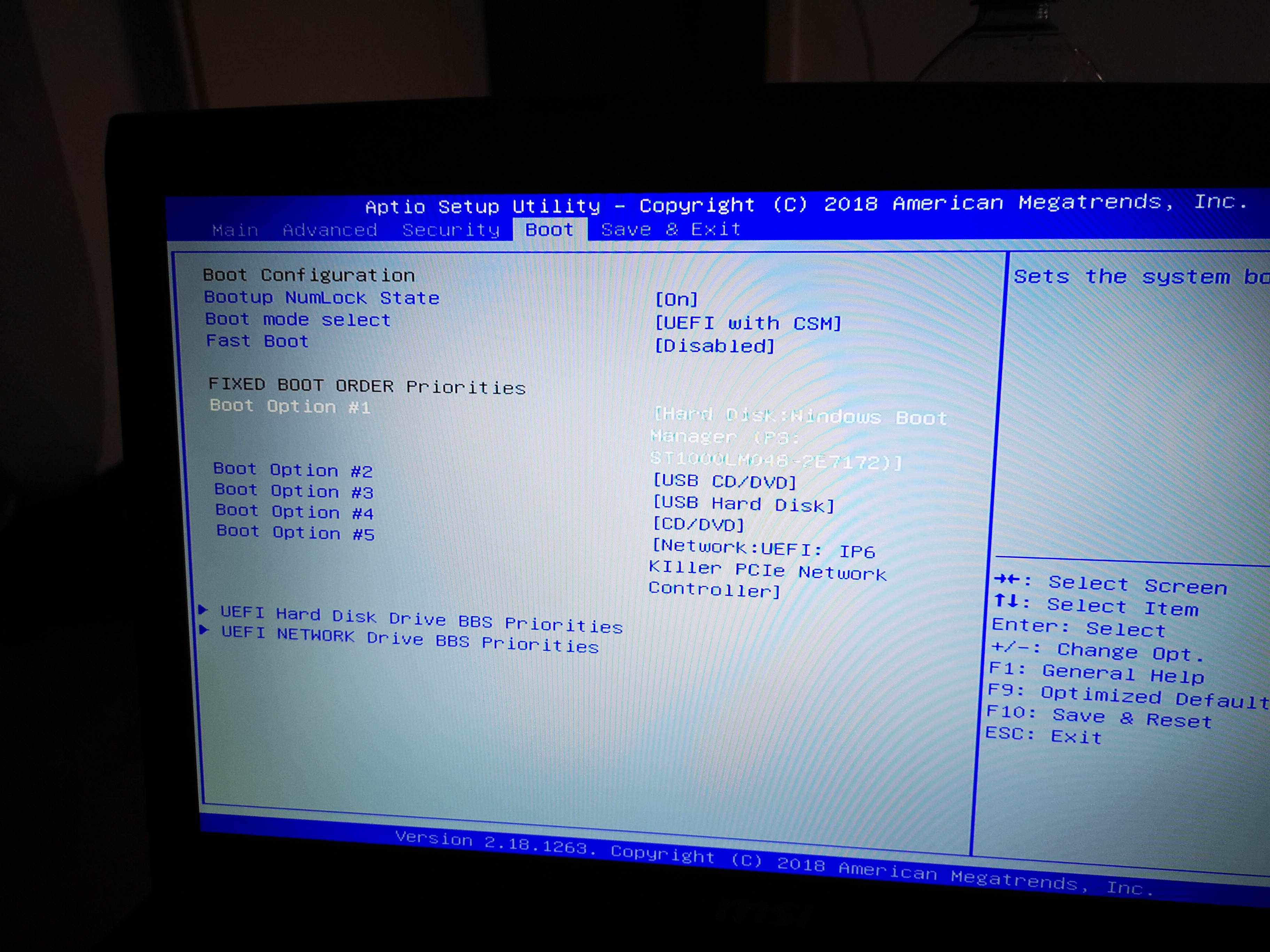 USB sollte da auf Option 1# stehen, wenn du vom Stick booten willst. Die HDD auf Platz 1 ist halt verkehrt und du bootest in den momentan vorhandenen Bootmanager auf der HDD
