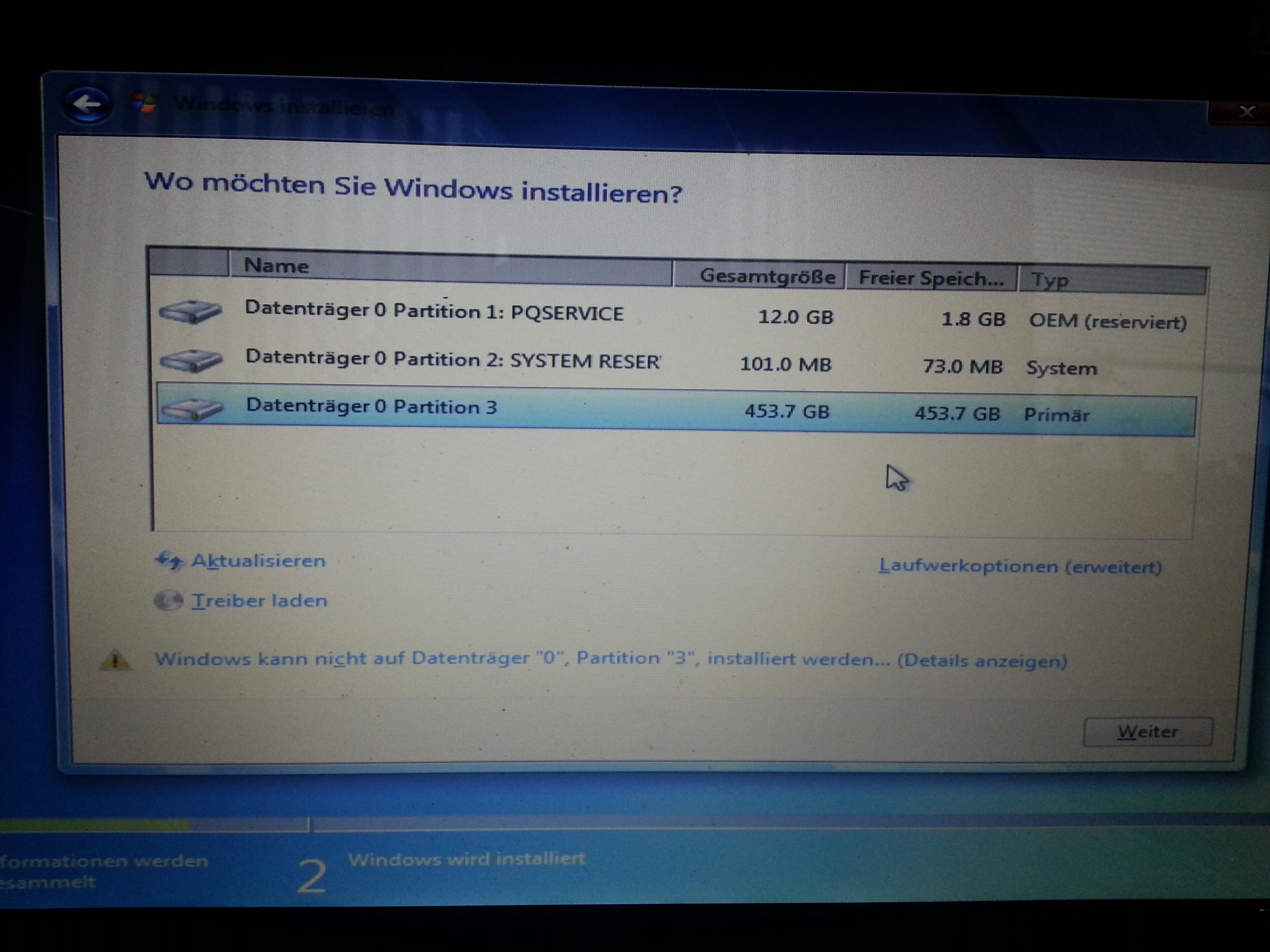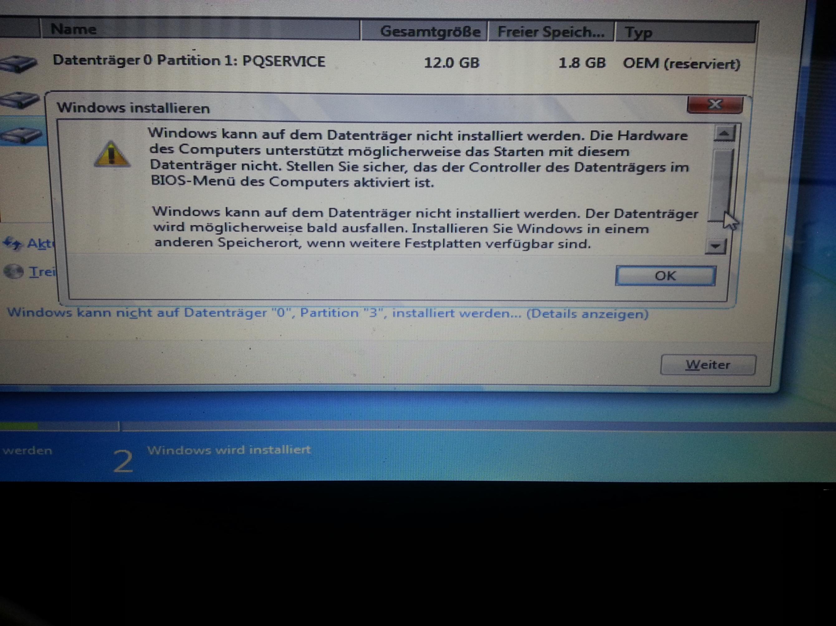 die fehlermeldung heißt : windows kann nicht auf datenträger 0 Partition 3 installiert werden