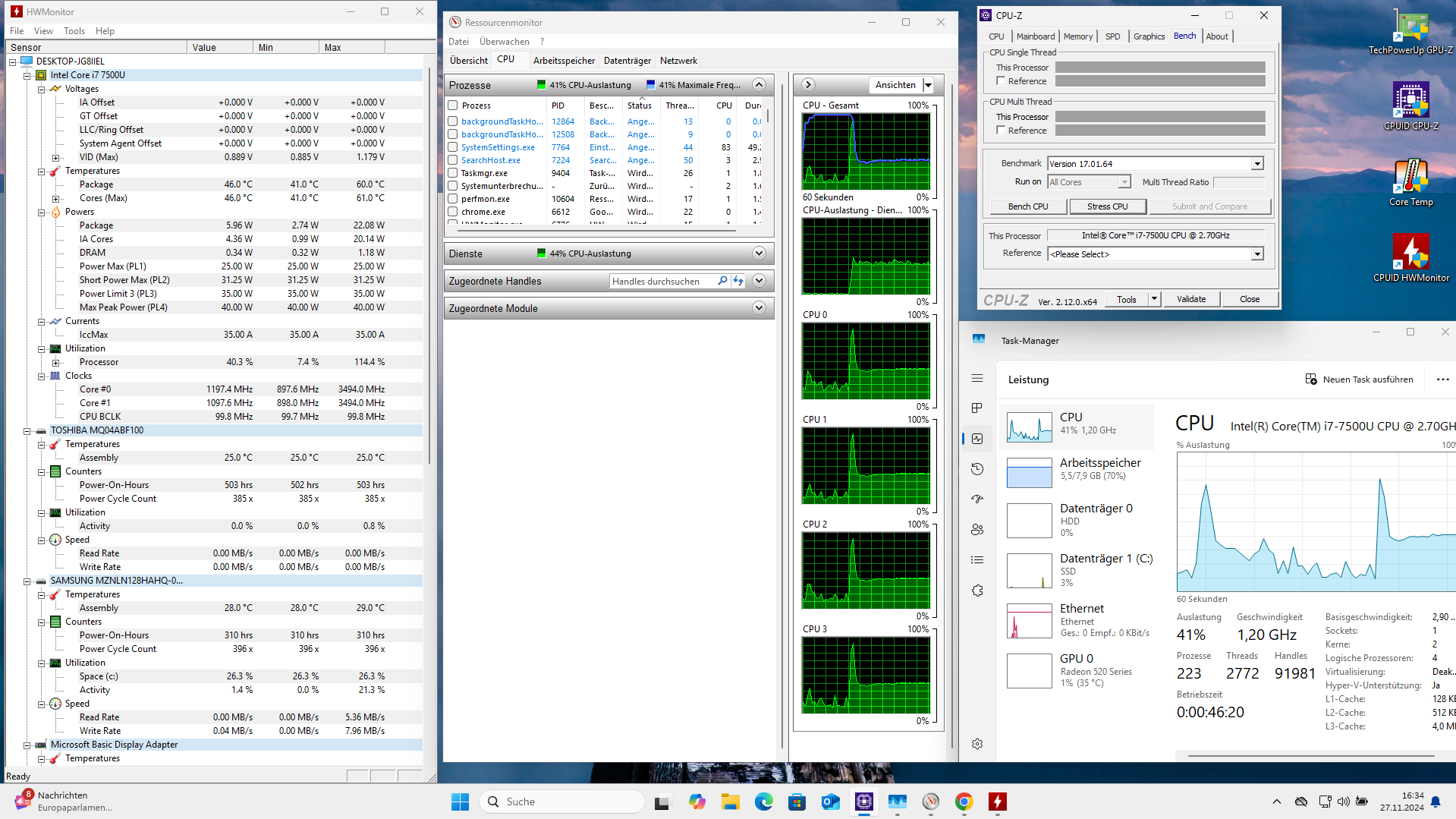 poste mal Bilder von SystemInformer (einem OpenSource ProcessExplorer Nachbau) vllt sehen wir dann mehr was genau wie ausgelastet it.