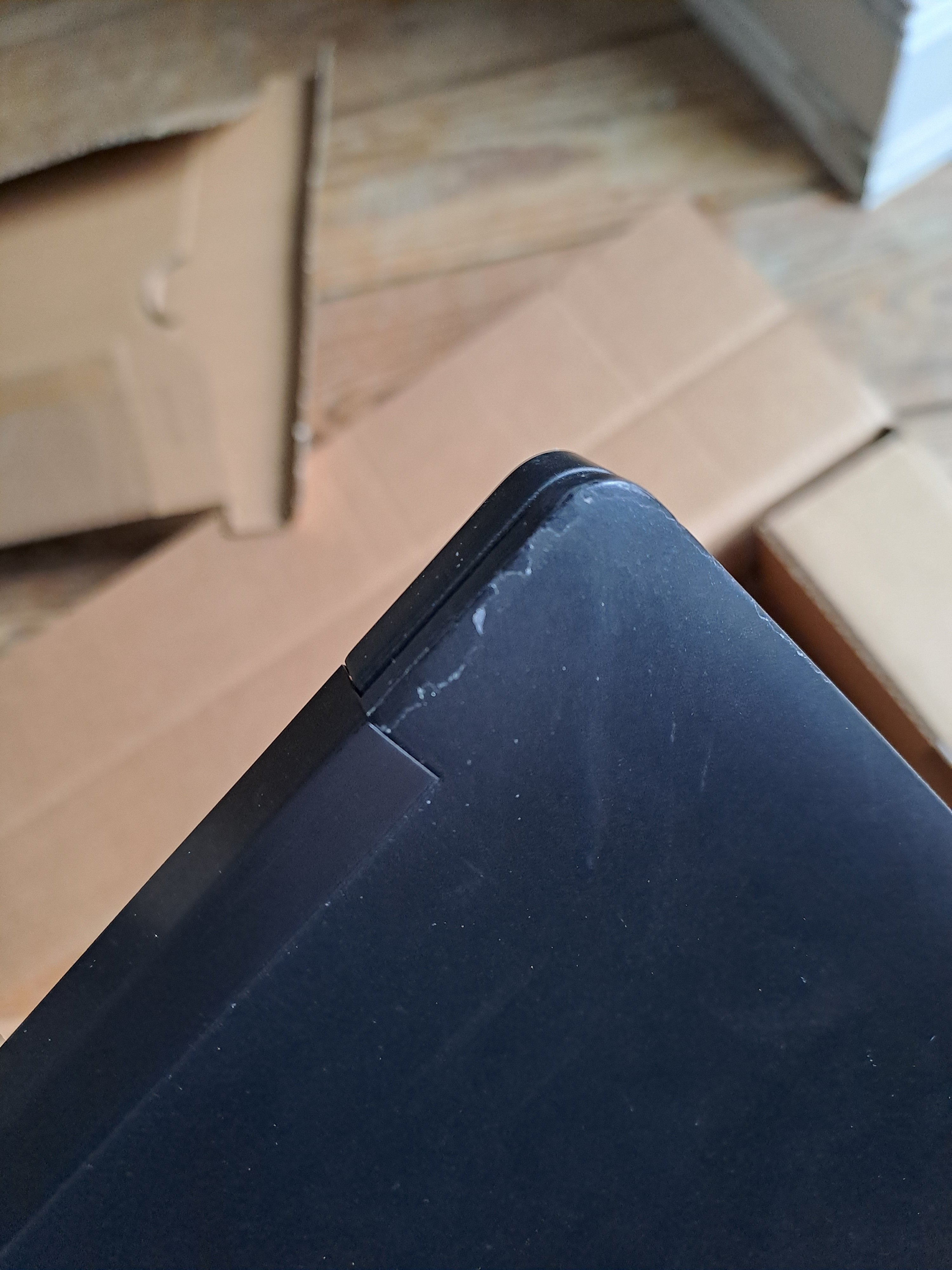 • Die Businessreihe ist ja eigentlich ziemlich resistent, daher wäre es interessant was das für ein Fleck auf der Oberseite. Im schlimmsten Fall löst sich da die Oberfläche, auch wenn vom Bild ich eher davon ausgehen würde das es wirklich nur ein Fleck ist.