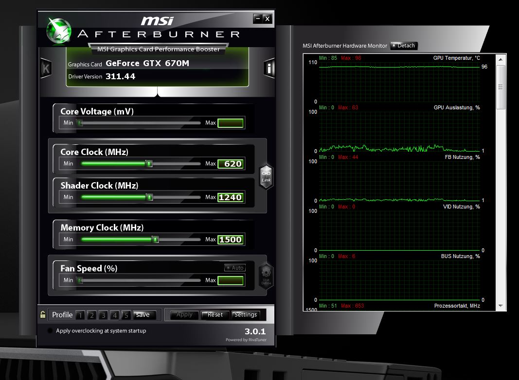 Im Afterburner von Nvidia Beträgt die GPU-Auslastung 0-1%, dennoch geht die Temperatur selten UNTER 96°... (Siehe Bild)