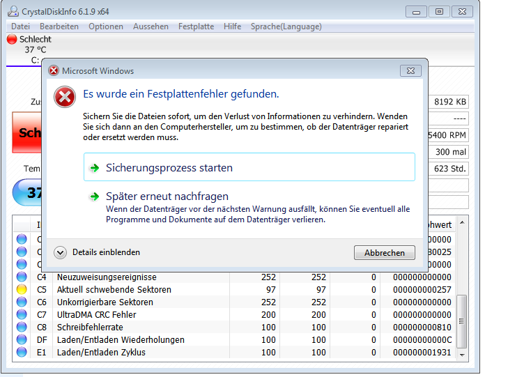Ich brauche wirklich Hilfe ich habe danach die ganze festplatte überprüfen lassen nach fehlende Sektoren und es hat paar Sachen bereinigt aber mir tzd. nicht weitergeholfen.