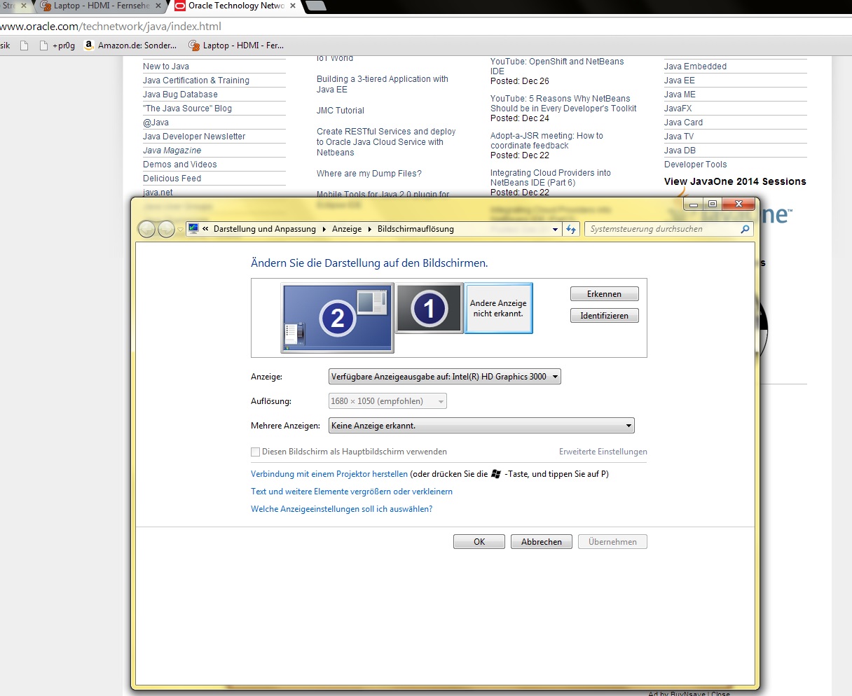 Wenn ich nun allerdings meinen Laptop anschließe erkennt weder der Laptop den Fernseher, noch der Fernseher den Laptop. Ich kann es mir nicht erklären, da mein Laptop unseren anderen Fernseher direkt erkennt und es auch problemlos funktioniert.