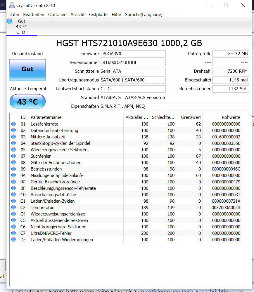 Ist mit der Festplatte alles in Ordnung? Kann ehrlich gesagt mit den Werten aus Crystaldiskinfo nichts anfangen..