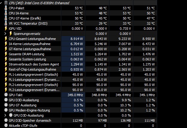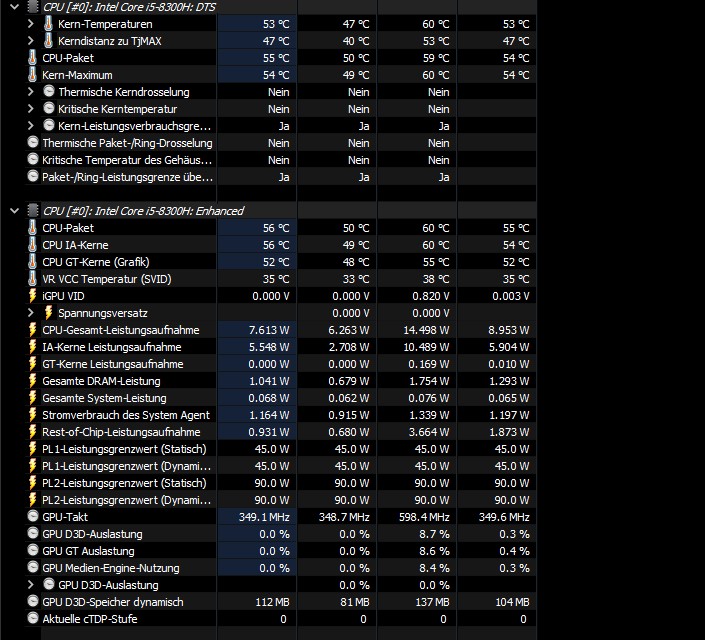Ne, mir geht es um folgendes: Wenn dein Laptop hängt weil er zu heiß wird und den Takt drosselt, dann sieht man das natürlich nur in dem Moment, wo er hängt.