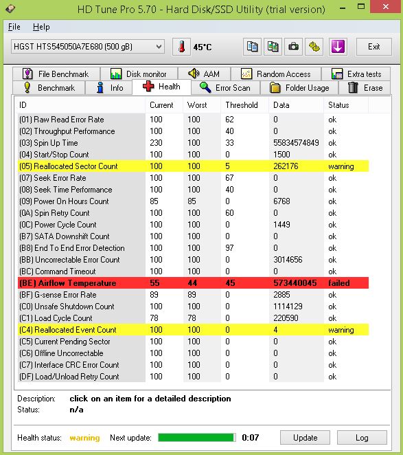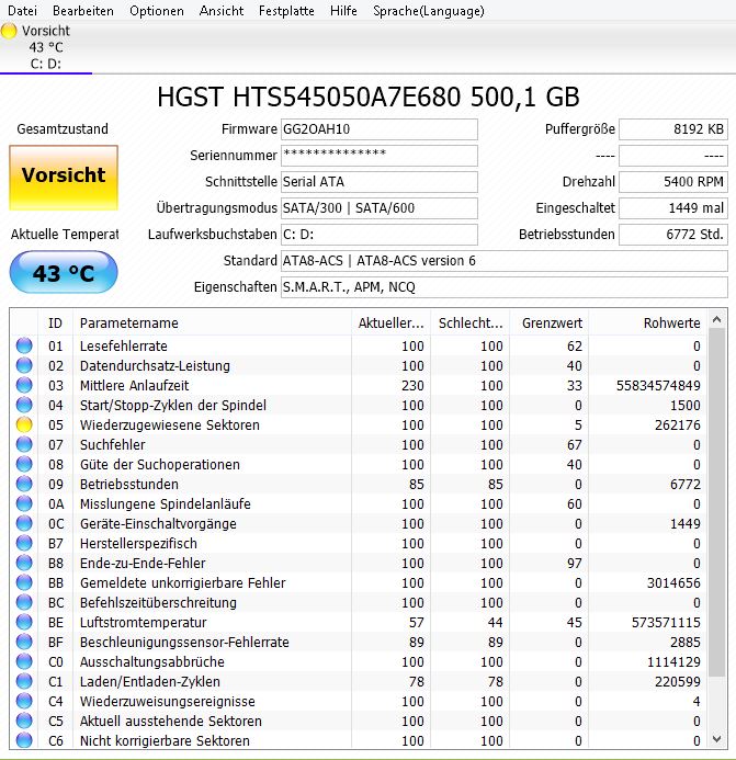 könnt ihr mir bitte etwas helfen und die Screenshots mal anschauen. Ich werde aus den Daten nicht so richtig schlau, ob nun die Festplatte der Grund ist, warum der Laptop so extrem lahm ist - oder es einfach an Windows 8 liegt. Ist die Festplatte defekt und ist das der Grund?