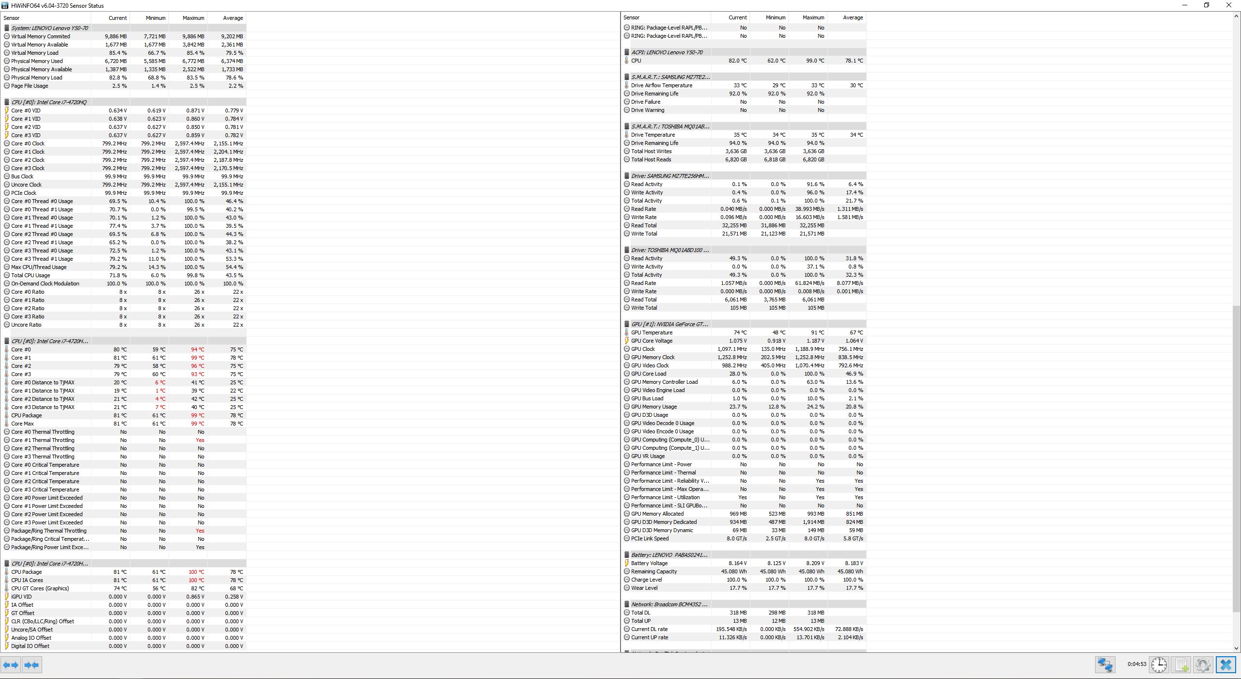 Edit: 2.2GHz (habe ich das richtig gesehen?) im Schnitt ist unter Vollauslastung evtl sogar realistisch, vor allem wenn noch die GPU gleichzeitig ins Spiel kommt. Gibt Situationen da taktete mein Macbook (mit ähnlicher CPU) auch nicht viel höher. Kann jetzt aber den Rest des Screenshots nicht gescheit interpretieren da mir der aufm Phone nur vermatscht dargestellt wird.