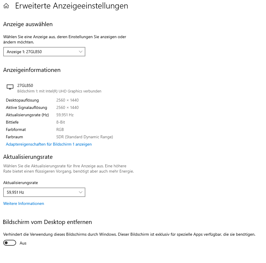 ich betreibe im Home Office einen LG 27GL850-B Monitor mit einem HP Elite Book.