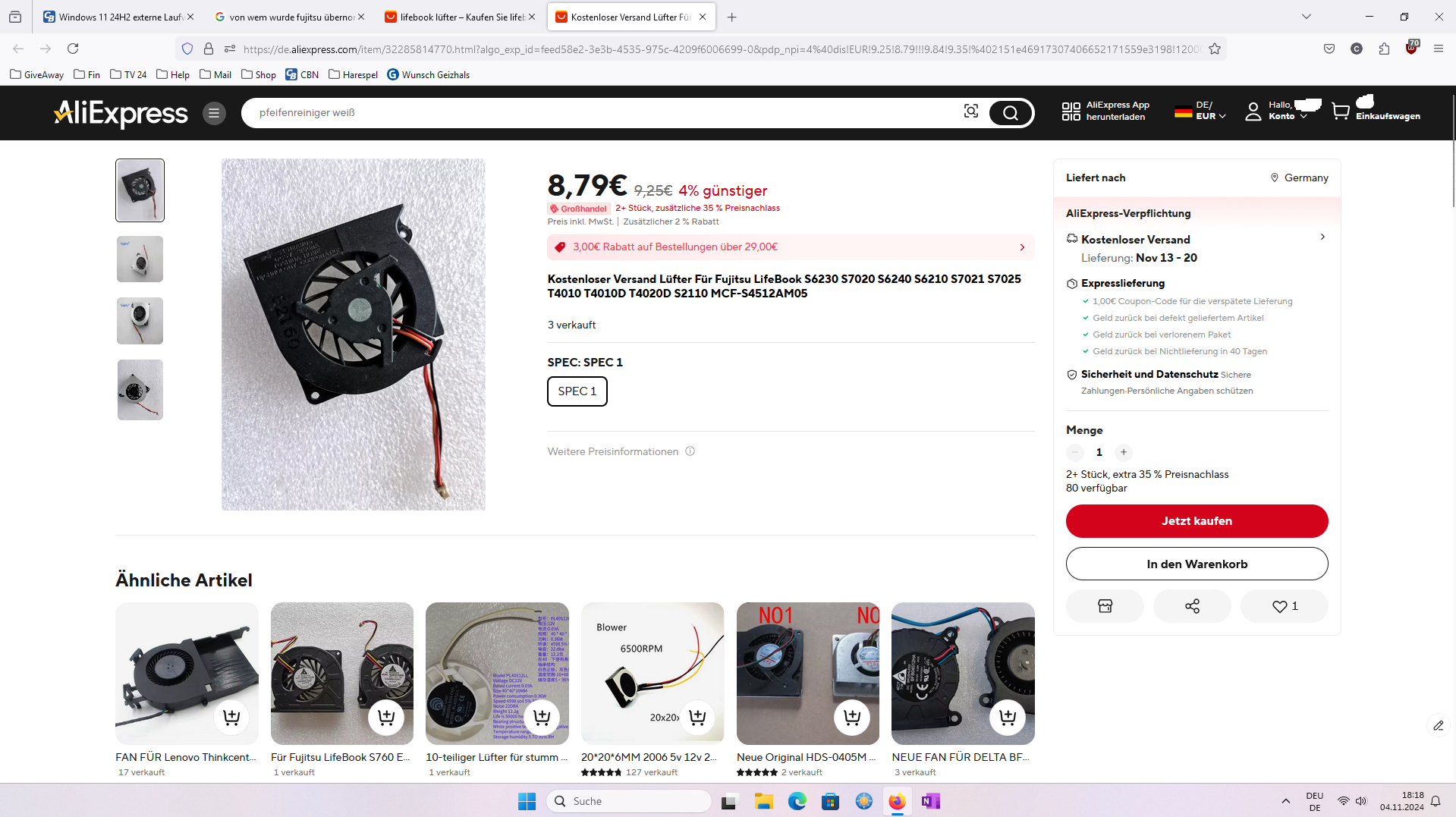 You tube meint etwas Öl in das Lüfterlager könnte das beheben.