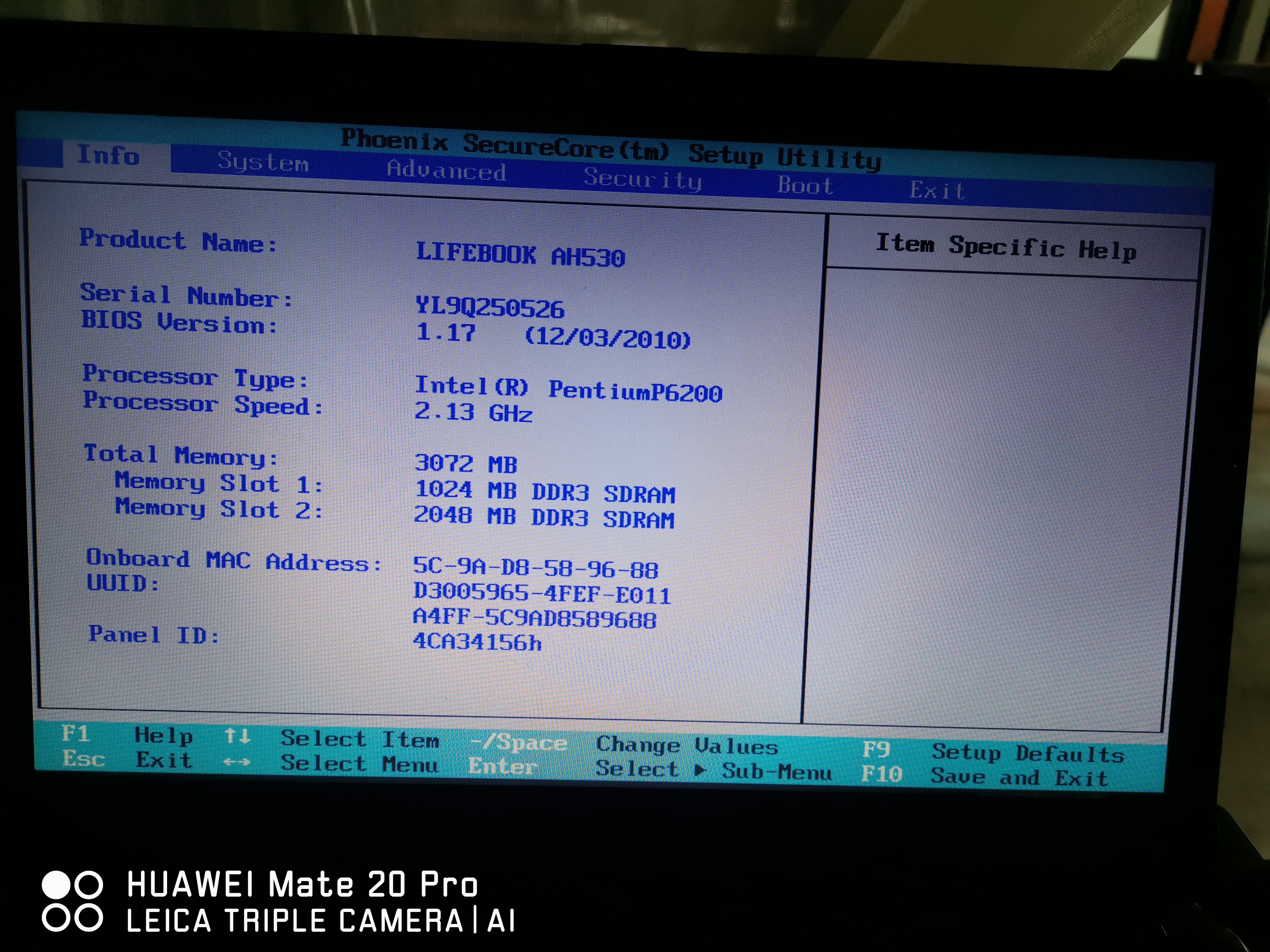 Es handelt sich um ein älteres Gerät, Fujitsu Lifebook AH530 mit einem Intel Pentium P6200, 3GB RAM, Windows 10. BIOS Vers.: 1.17 (ist das aktuellste, welches ich gefunden habe).
