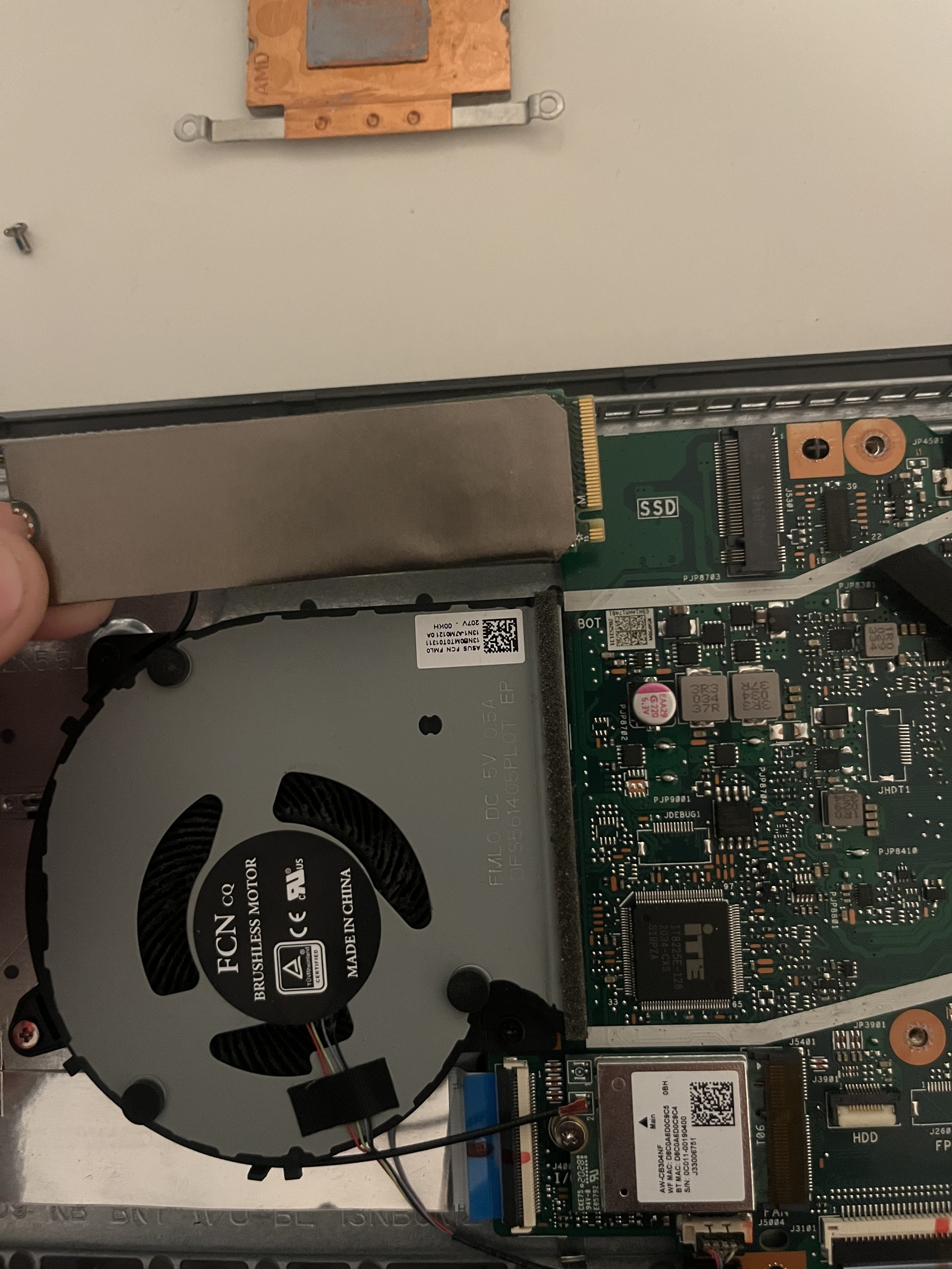 Es sieht so aus, als ob bei Montage einer extra GPU noch ein Kühl- / Luftleitblech mit Heatpie vorgesehen wäre.