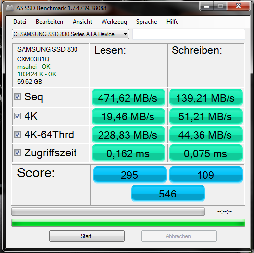 Das Notebook ist ein Thinkpad T410i, SSD ist eine Samsung 830