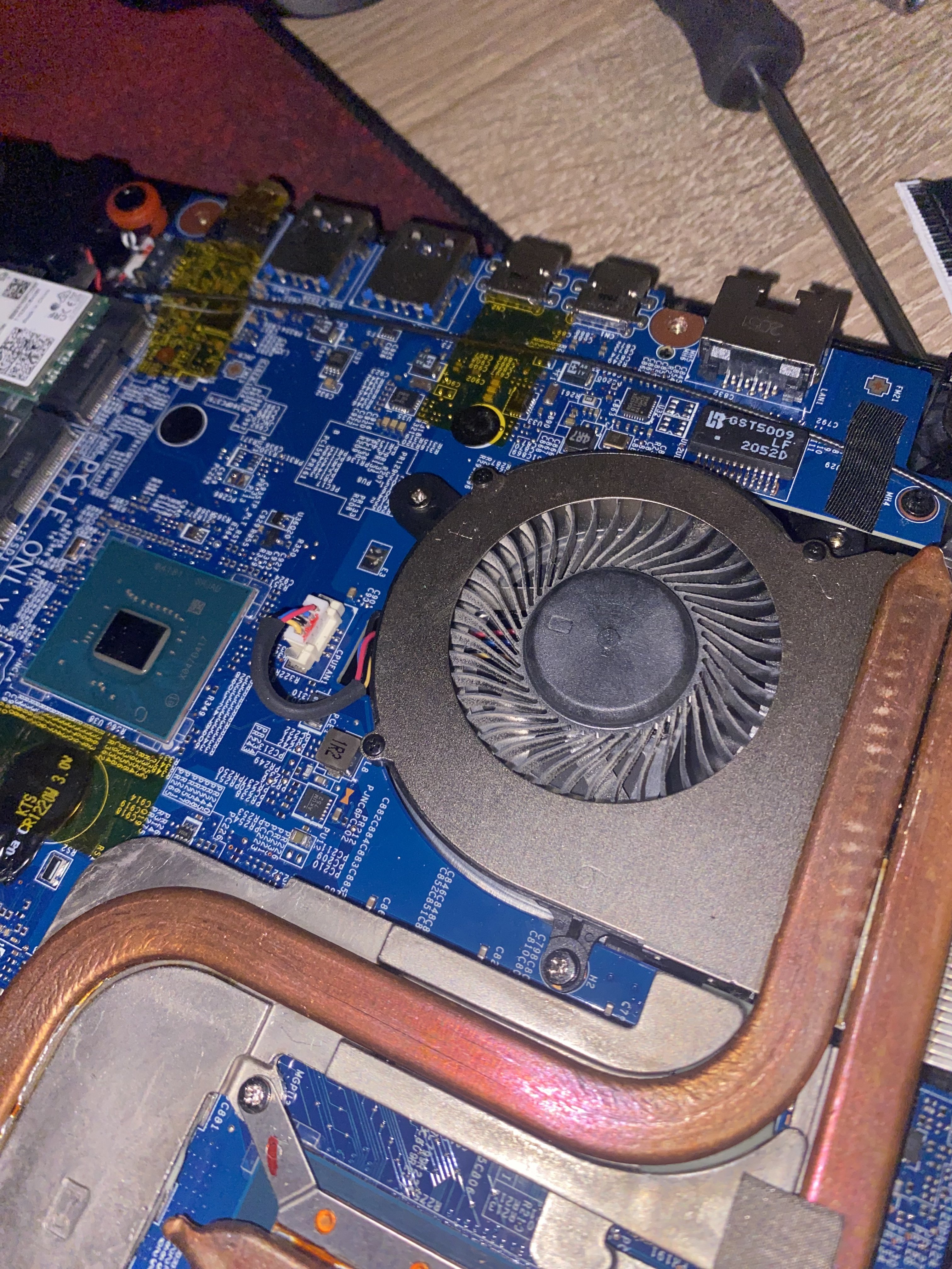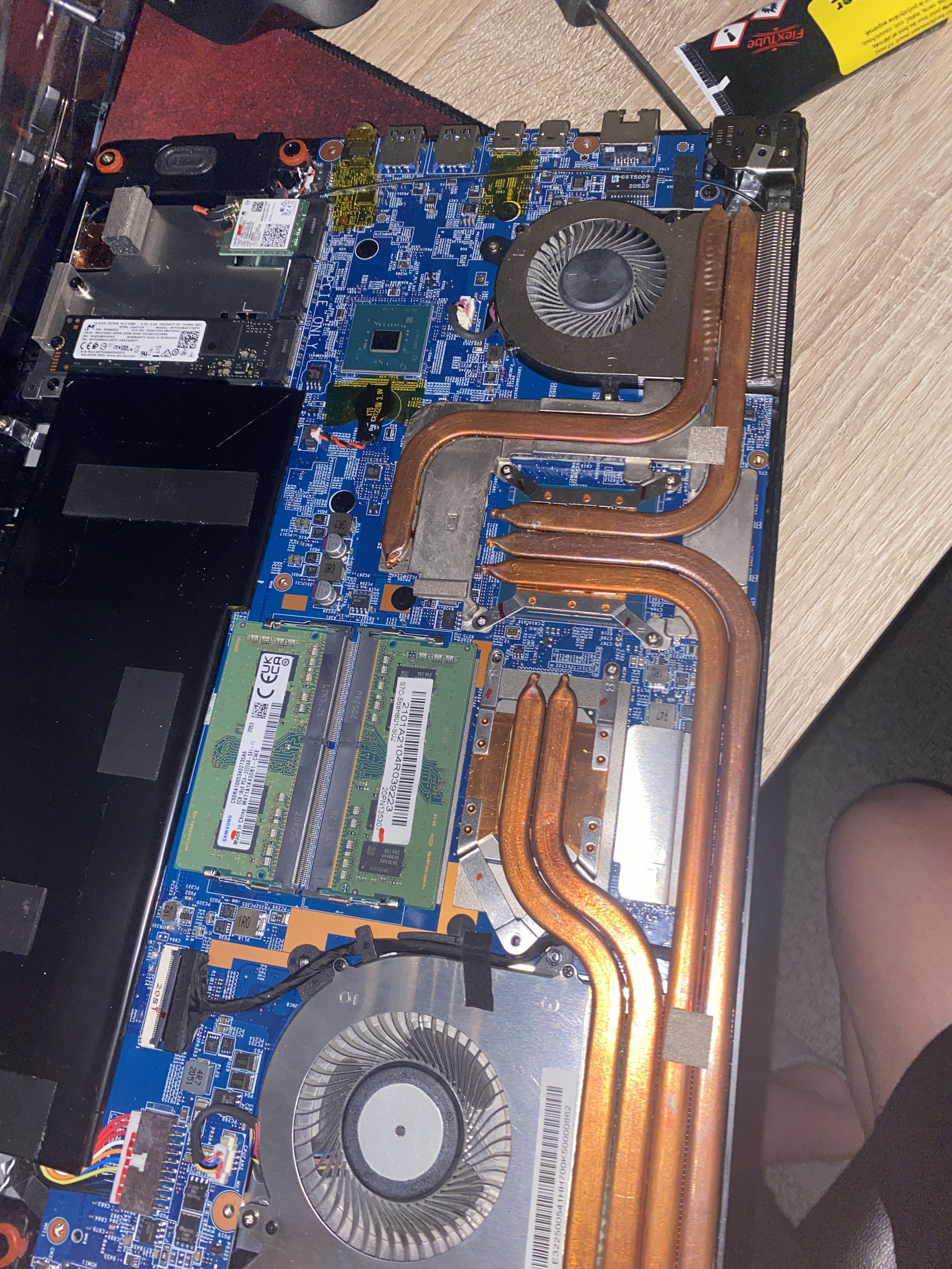 Da die Temperatur immer über 100 Grad ging wurde mir empfohlen mal die WLP auszutauschen. Gesagt, getan neue WLP bestellt die Mx-2 von Arctic. Gehäuse aufgeschraubt und die alte WLP mit nem tuch abgewischt von CPU und Grafikeinheit. Erbsengroßen punkt drauf: Einhheit wieder draufgemacht Alles wieder dran geschraubt und die CPU und lüfter kabel wieder ran gesteckt.