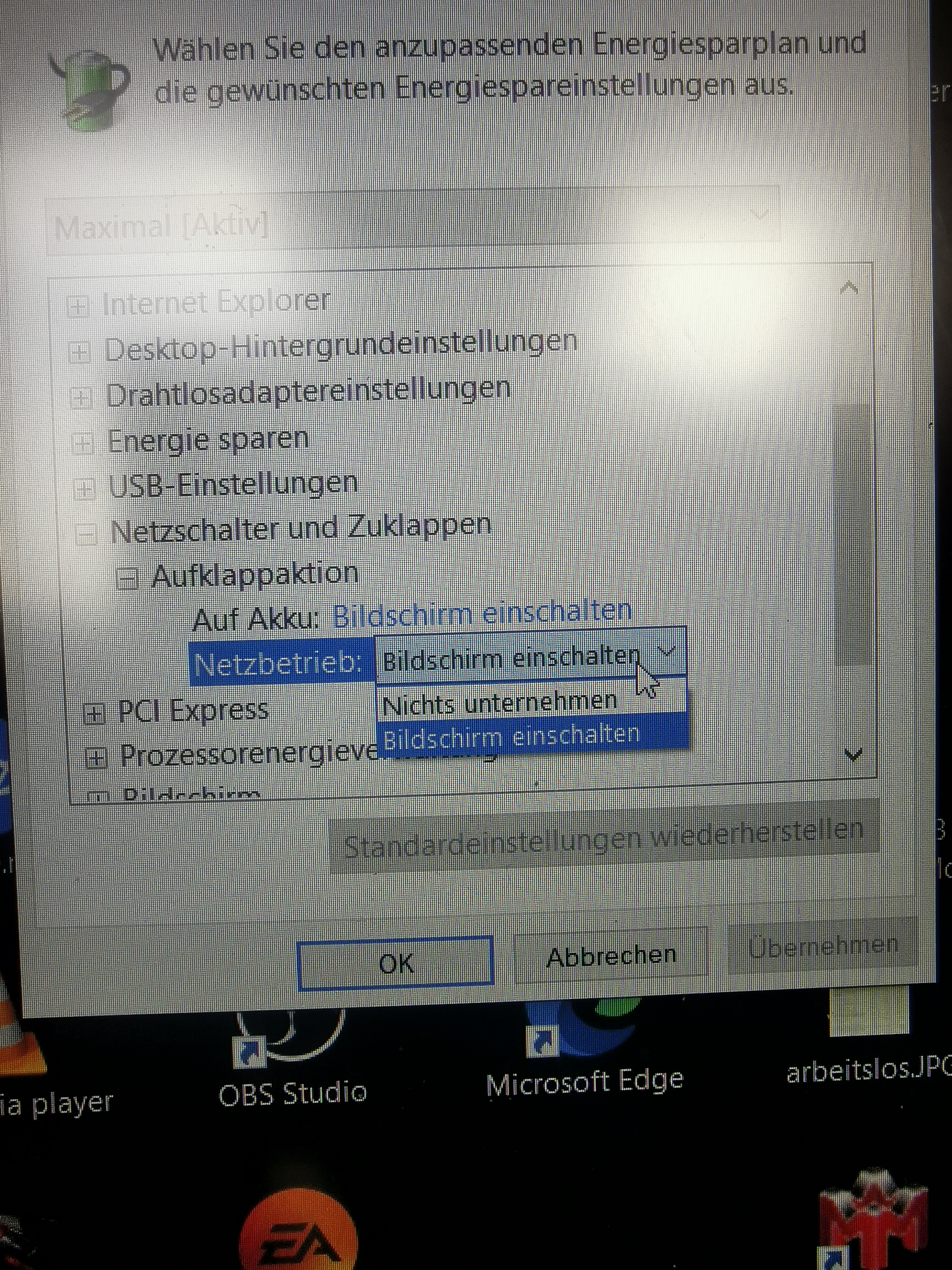 Wake on LAN scheint mein Laptop nicht zu unterstützen. Ich finde die Option nicht im BIOS. Im Gerätemanager ist das aber übrigens aufgeführt btw. Es gibt aber ja auch die Option, den Laptop hochzufahren, wenn ich ihn aufklappe. Die Option gibt es im BIOS bzw UEFI. Aber: Windows zeigt sie mir nicht an