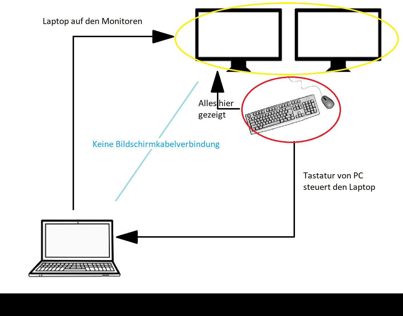 Mein Ziel ist es das ich den Laptop vom PC aus steuern kann, aber trotzdem Beide Bildschirme Nutzen kann.