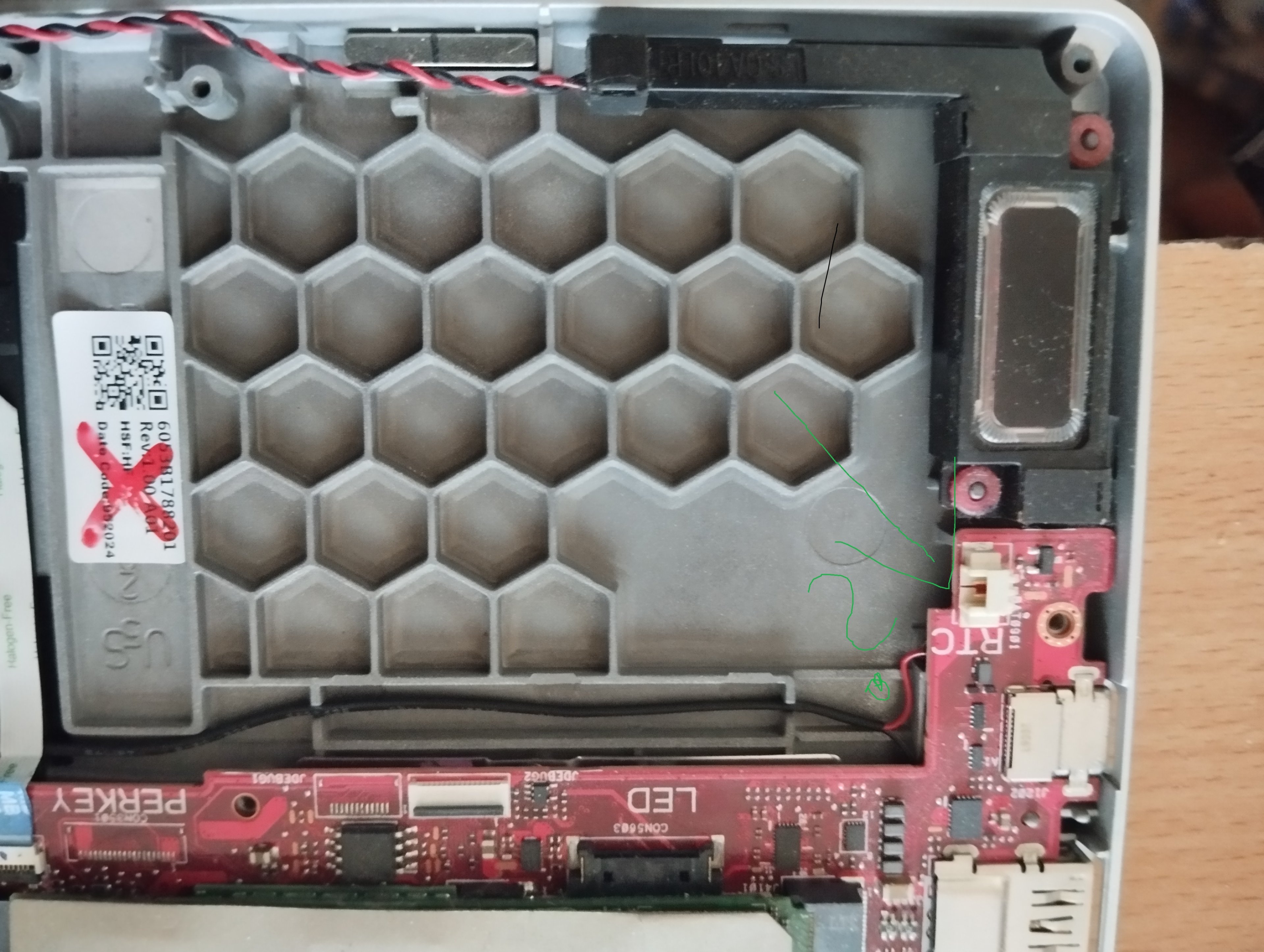 Hab ihn jetzt offen, komisch da is keine CMOS batterie wie in dem Video drinnen :Oqiller schrieb:Der nächste Kandidat wäre die Netzteilbuchse, prüfen ob überhaupt Strom in das Gerät fließt. Wenn du Glück hast, ist es das schon (evt. gebrochene Lötstellen o. ausgeleierte Buchsenkontakte). Viele Laptops haben aber auch eine gesteckte Buchse, das ist dann noch einfacher, diese zu wechseln (muss man nur eine Ersatzbuchse finden).