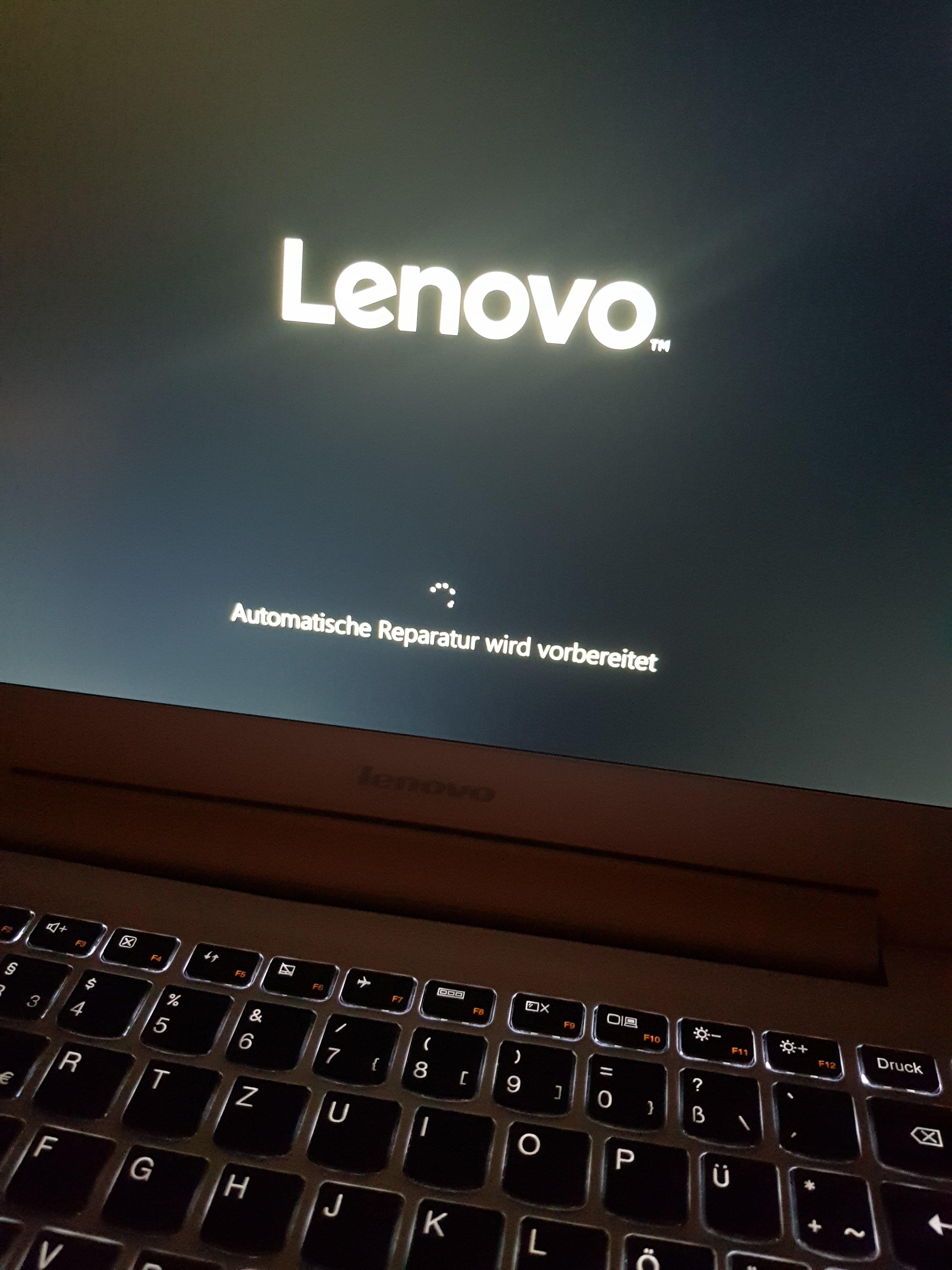 Ich hab gestern meinen Laptop ganz normal heruntergefahren. Er fing an seine Updates zu installieren und ich bin weggegangen. Ein paar Stunden später bin ich zurückgekommen, der Laptop war normal ausgeschaltet. Ich schalte ihn wieder an und auf einmal steht am Startbildschirm "Diagnose des PC's wird ausgeführt" (Oder so ähnlich, siehe Bilder). Dann werde ich weitergeleitet zu den Reperatur Optionen, habe alle ausprobiert, abgesicherter Modus usw. es verändert sich aber nichts. Ich habe sogar versucht durch die Optionen alles zurückzusetzen, also ausser Dateien und Dokumente (Nur Programme, Einstellungen), allerdings funktioniert das nicht, da anscheinend kein freier Speicherplatz auf der Festplatte bzw. nicht der benötigte Platz frei ist. Dann hab ich noch versucht die letzten Updates zu deinstallieren, ich bekomme aber nur eine Fehlermeldung.