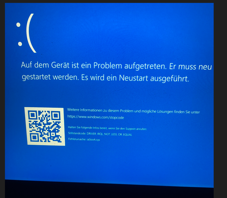 Mein Laptop lief einwandfrei. Plötzlich hat sich beim Neustart ein blaues Fenster geöffnet mit dem Text: