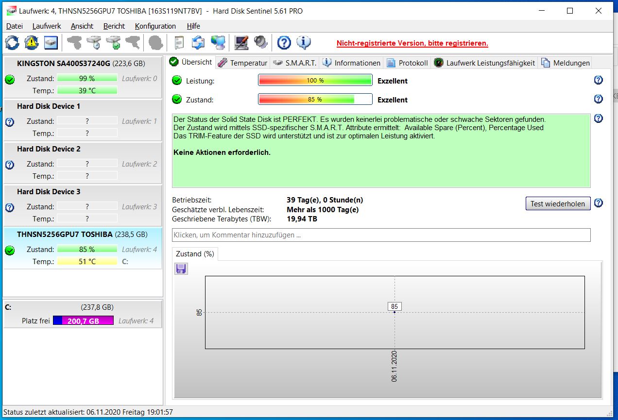 Windows 10 Version ist die 20H2 mit 64 bit.