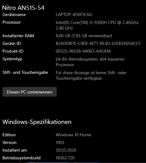 Ich habe momentan folgendes Problem, wie schon oben geschrieben, dass mein Laptop (Acer Nitro 5, genauere Details im Anhang) beim starten von spielen abstürzt.