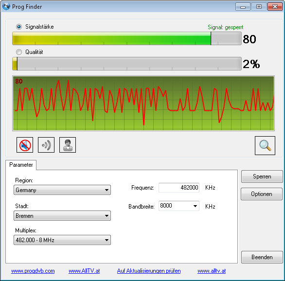Die Karte sollte korrekt installiert sein. Sie wird mir in ProgDVB angezeigt und ist auswählbar. Allerdings finde ich keine Sender. Also habe ich Prog Finder installiert und siehe da: Kein Signal.