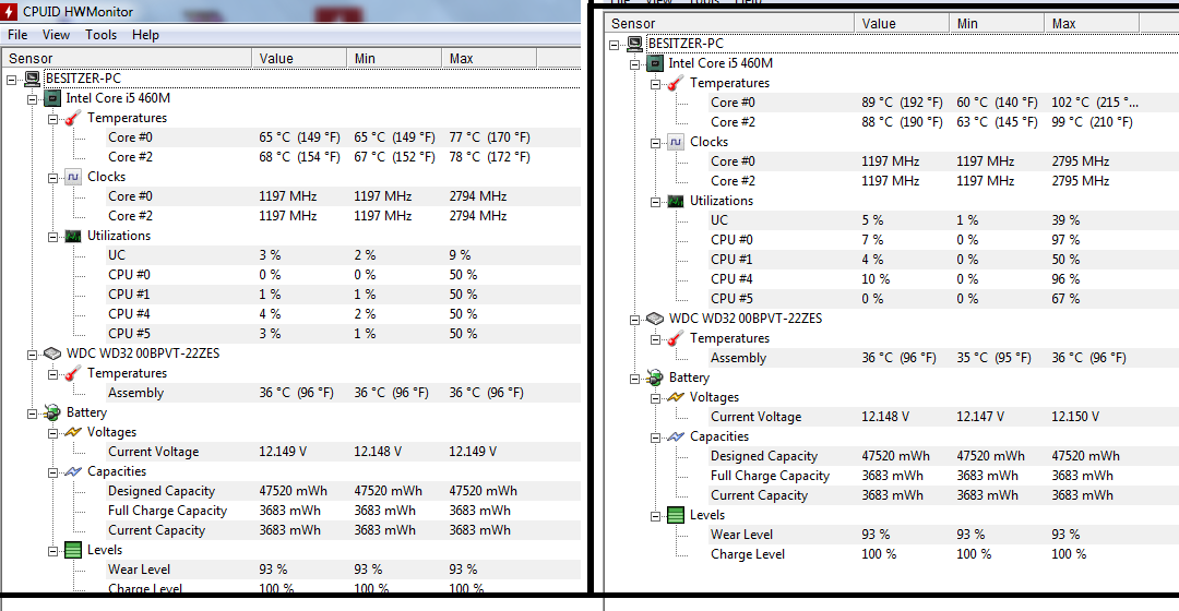 Nun weis ich nicht mehr weiter. Im "Leerlauf" ist der Unterboden recht warm, jedoch nicht so dass das Laptop überhitzt.