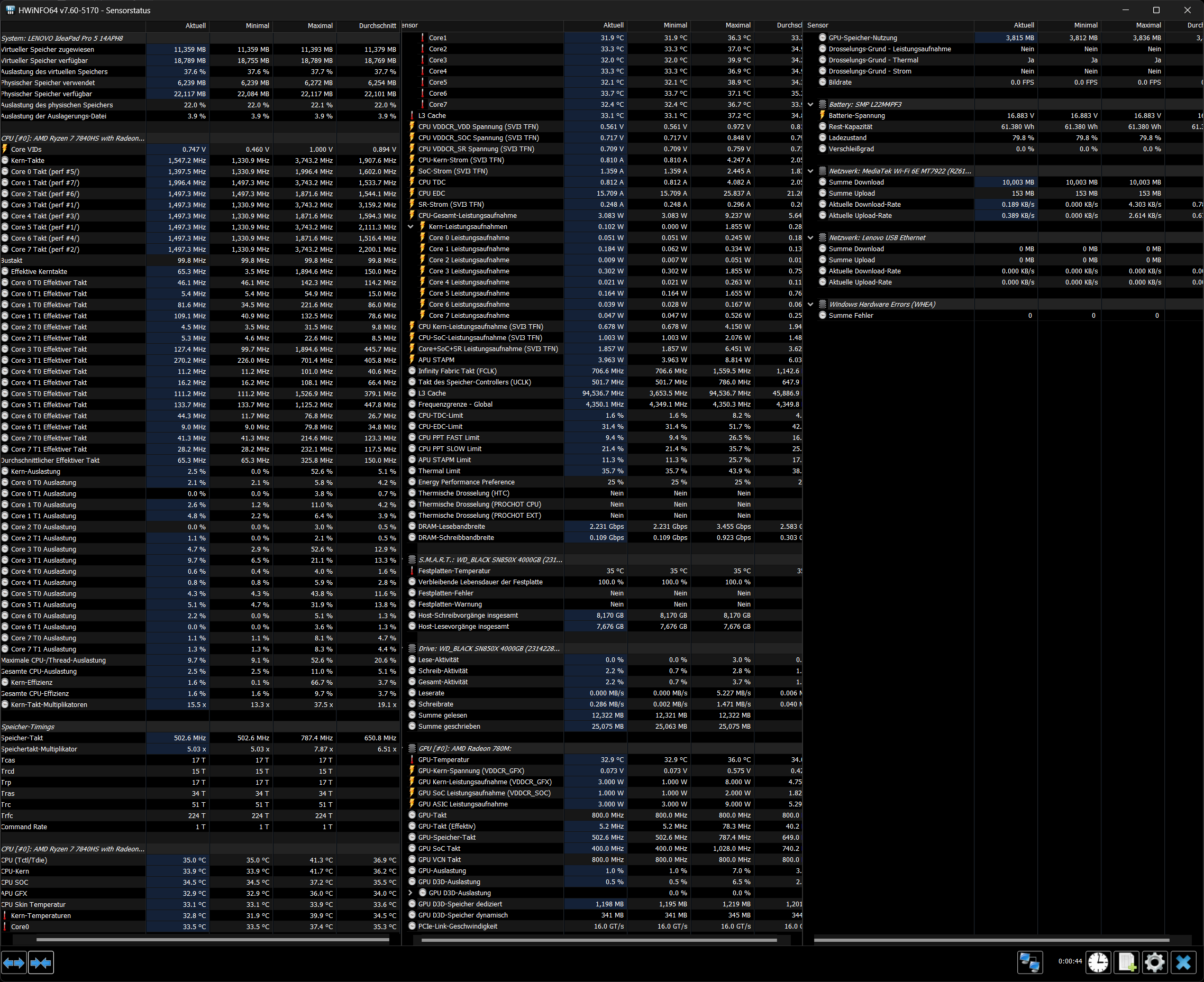 Habe die HWINFO-Software heruntergekaden und zwei Screenshots gemacht... Viel schlauer bin ich aber nicht geworden, da ich nicht viel davon verstehe.
