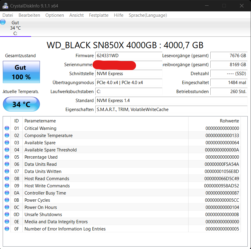 Was sagt denn die Ausgabe von Crystaldisk Info?