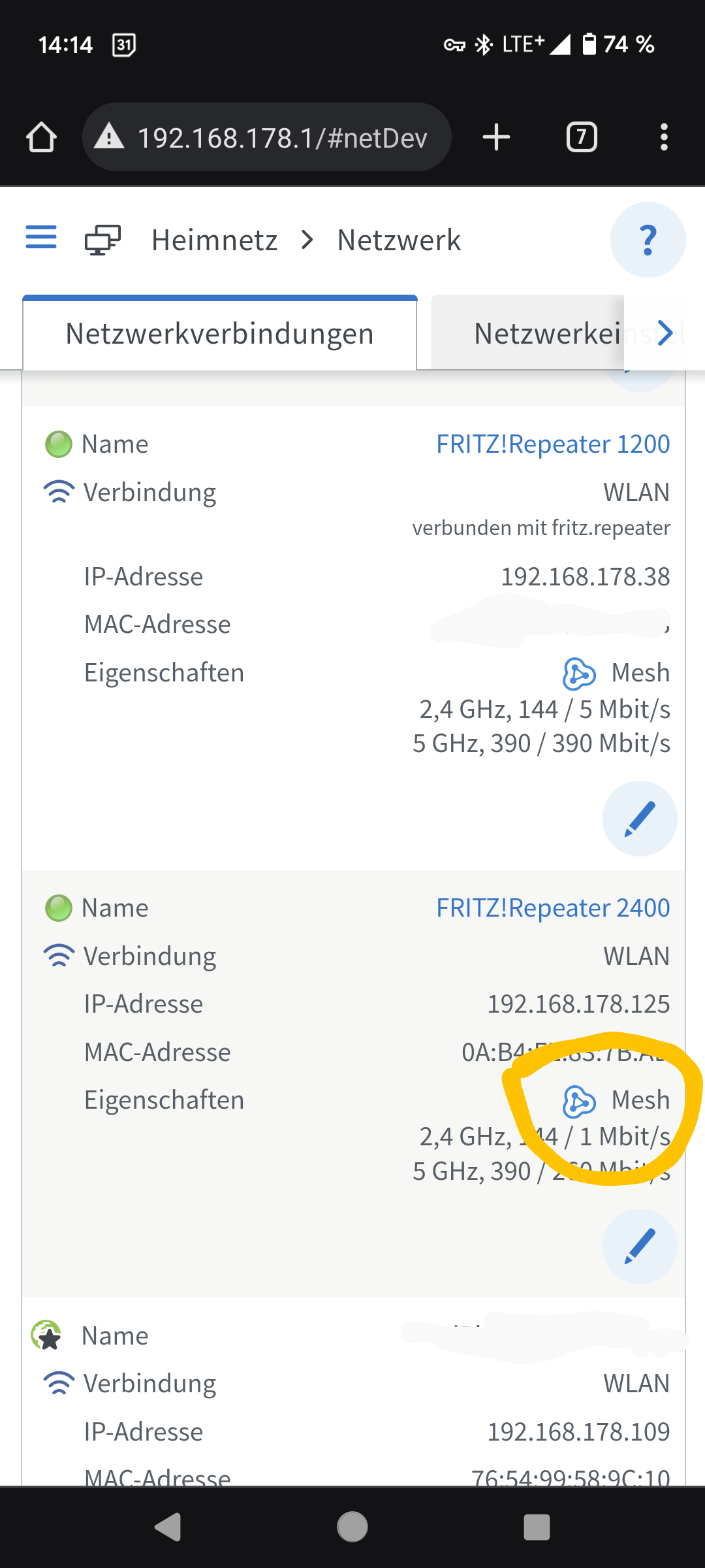 Wenn ich das Netzwerkkabel ausstecke, verbindet sich das Notebook mit der FritzBox und nicht mit dem Repeater.